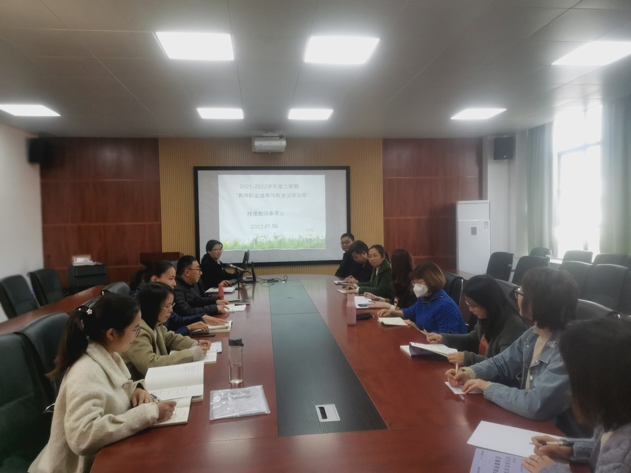 为进一步提高教师教育课程教学质量,1月6日上午,《教师职业道德与教育法律法规》课程组授课教师在知行区知行楼212室召开集体备课会。