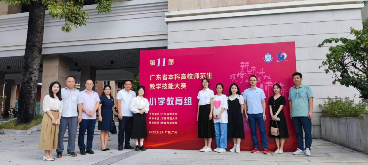 由广东省教育厅主办、华南师范大学承办的“第十一届广东省本科高校师范生教学技能大赛小学教育组”在华南师范大学大学城校区举行,来自华南师范大学、韩山师范学院、岭南师范学院、东莞理工学院、惠州学院等十多所省内高校的小学教育专业本科生参加了此次比赛。本次比赛共设置一等奖4名,我校由罗家才、陈庆礼老师指导的2020级小学教育(公费定向)01班学生李雨舟以全省总分第1名的好成绩获省一等奖;由穆湘兰、李宁老师指导的2020级小学教育(公费定向)02班学生戴惠娟荣获省一等奖,2020级小教专业王嘉琪、何霖徽两位同学获优秀奖。