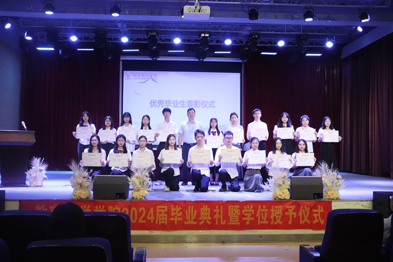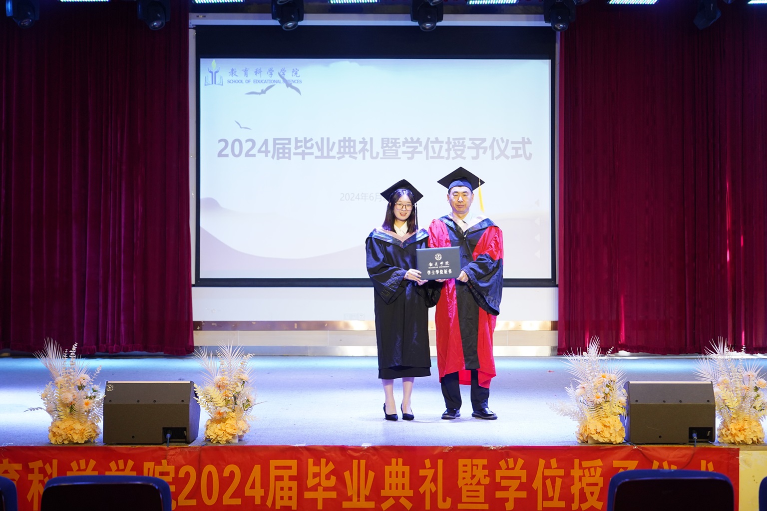 6月24日,教育科学学院在知行区知书楼演播厅隆重举行了2024届毕业典礼暨学位授予仪式,党委书记杨建新、院长王彦才、副书记徐文渊、副院长黄德群以及毕业班班主任、辅导员出席,共同为毕业生们送上最美好的祝福。