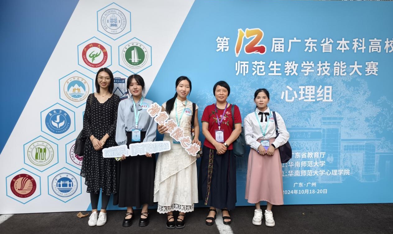 2024年10月18日至20日,由广东省教育厅主办、华南师范大学承办的“第十二届广东省本科高校师范生教学技能大赛(心理组)”在华南师范大学石牌校区举行,来自华南师范大学、深圳大学、广州大学等11所省内高校的心理学专业本科生参加了此次比赛。在激烈的角逐中,我校教育科学学院的学子们表现出色,由方必基、谭红秀老师指导的2021级心理学01班的王欣同学荣获一等奖,由黄欣欣、江雪玲老师指导的2021级心理学01班的邓海宇同学荣获三等奖。