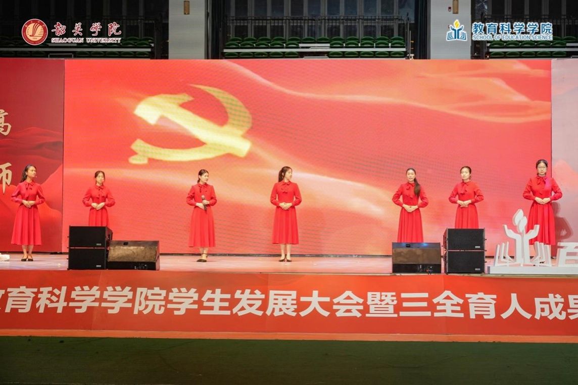 为贯彻落实全国教育大会精神,深入推进“三全育人”工作,让师范生更好践行教育家精神,提升师德修养,促进学生全面成长,进一步加强学风建设,营造创先争优的浓厚氛围,充分发挥榜样的引领作用,激发同学们勤奋学习、积极向上,培养学生集体荣誉感,提高学生凝聚力,教育科学学院于11月13日在西区体育馆举行了2024年学生发展大会暨三全育人成果汇演,学院党委书记杨建新、学校团委书记邓媛、物资招标采购中心主任廖星、宣传部副部长何国举、学生工作部副部长陈莹、物资招标采购中心副主任洪红、学院党委副书记徐文渊、学院副院长廖素群、“师范生多维素质”名辅导员工作室成员曾小翠、廖海丹、谢新敏,全体班主任、辅导员、社团指导老师以及全体教育科学学院在校生参加。