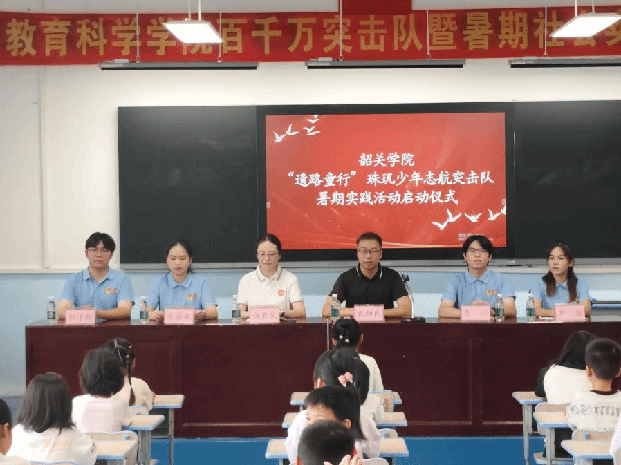 7月14日,韶关学院教育科学学院“遗路童行”珠玑少年志航突击队在指导教师白有凤的带领下前往南雄市珠玑镇中心小学开展为期两周的暑期实践活动。