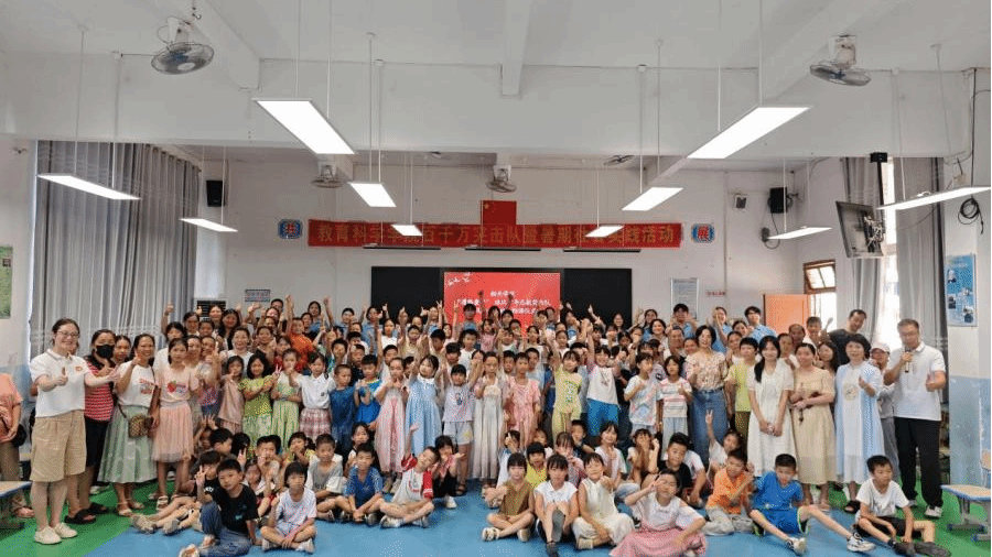 2025年7月14日至25日,韶关学院校级重点实践队——“遗路童行”珠玑少年志航突击队在南雄市珠玑镇中心小学成功开展了为期两周的“风华少年班”暑期实践活动。活动面向珠玑镇中心小学90名二至四年级学生,深度融合珠玑镇非物质文化遗产资源,精心设计故里风华、艺彩律动、活力体育、奇妙英语四大课程模块。通过班级姓氏树溯源、香火龙体验、扎染技艺研习、剪纸创作等多元形式,以沉浸式文化教学,打造了兼具深度与趣味的文化启蒙课,为学生提供了知识与文化交融的学习体验,助力学生深度感知家乡魅力,增进文化认同与乡土情怀。