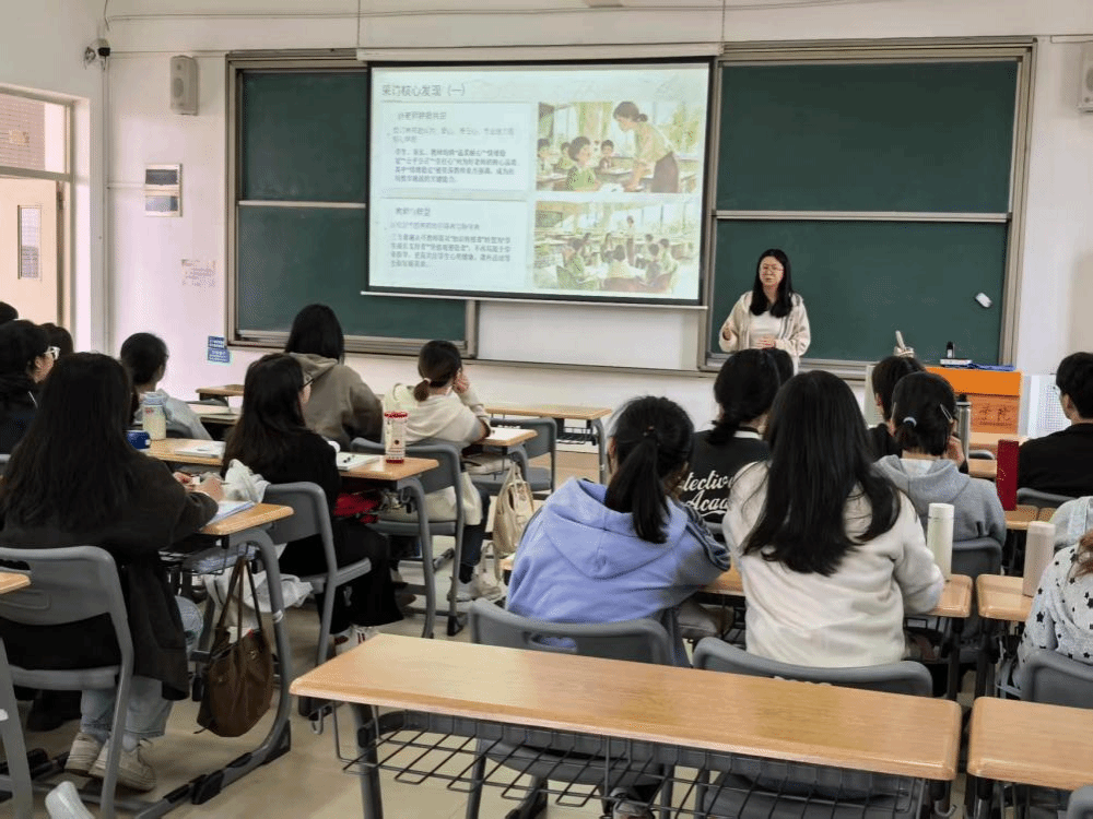 11月20日,主题实践调查分享会如期举行,各小组代表以脱稿汇报的形式,围绕调查实施思路--调查发现--反思与感悟三大模块展开分享。汇报者不仅能流畅复述采访对象的核心观点,还能结合课件中的数据图表,清晰分析学生期待的温柔老师与家长看重的负责老师之间的共性与差异;在解读视频片段时,更能详细说明为何选择慢镜头呈现教师辅导学生的画面、如何通过色彩搭配传递教育温暖等创作细节,展现出扎实的逻辑表达与临场应变能力。“没有关怀的专业,是冰冷的;没有专业的关怀,是空洞的”“教学功底是地基,师德与技能是承重墙”等金句在汇报中频频出现,既引发全场对教师职业的深度思考,也彰显出师范生日益成熟的教育认知。