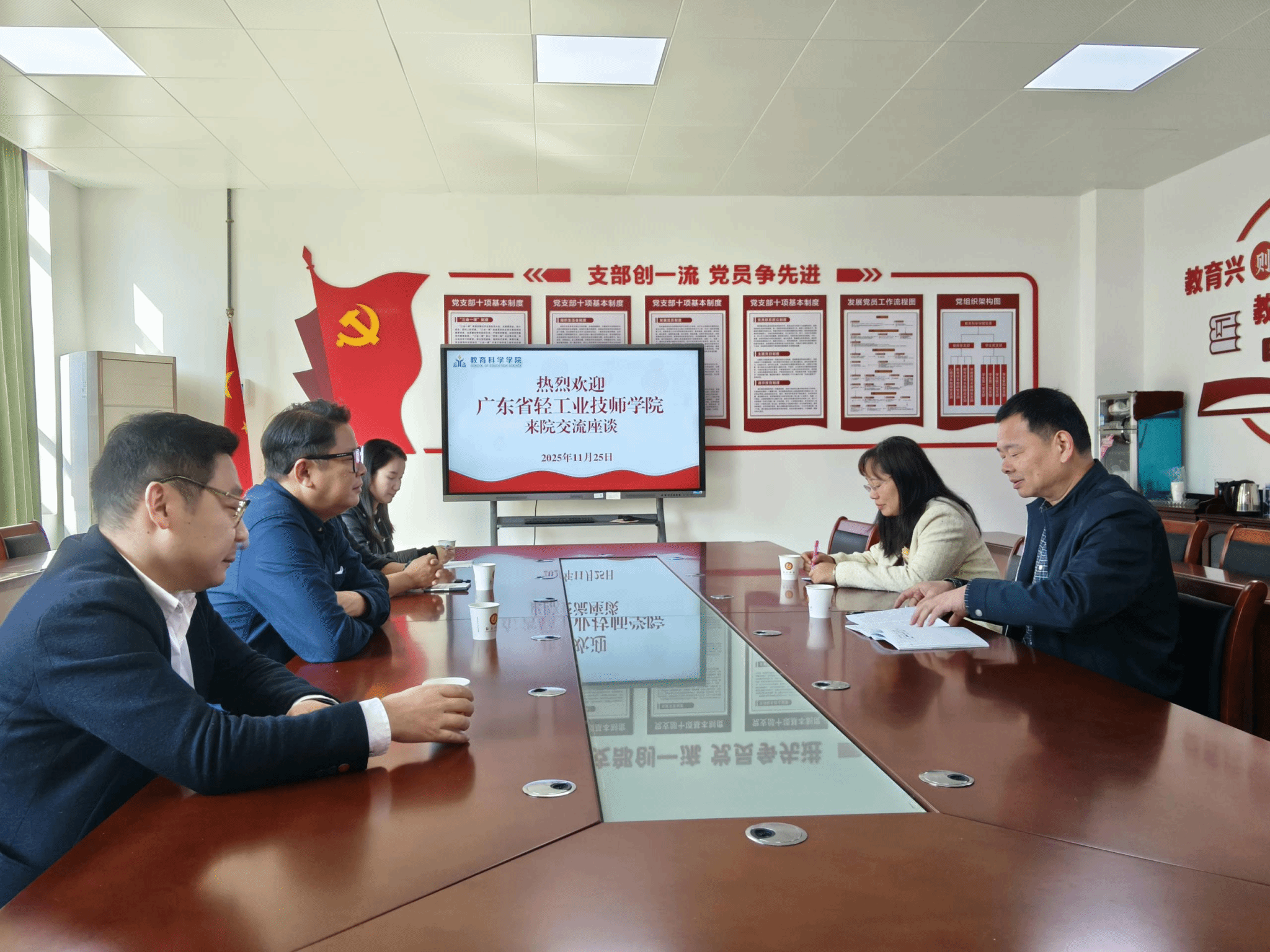 2025年11月25日,广东省轻工业技师学院数字艺术学院院长陈少敏、数字艺术学院党支部副书记洪家和、数字艺术学院综合科科长蒋慧一行3人,与韶关市力言文化科技有限公司执行董事兼总经理黄帅院友共同来到我院进行深度交流调研。教育科学学院党委书记杨建新及教育技术系陈永亮、廖丽琼两位专任教师参加了交流会。