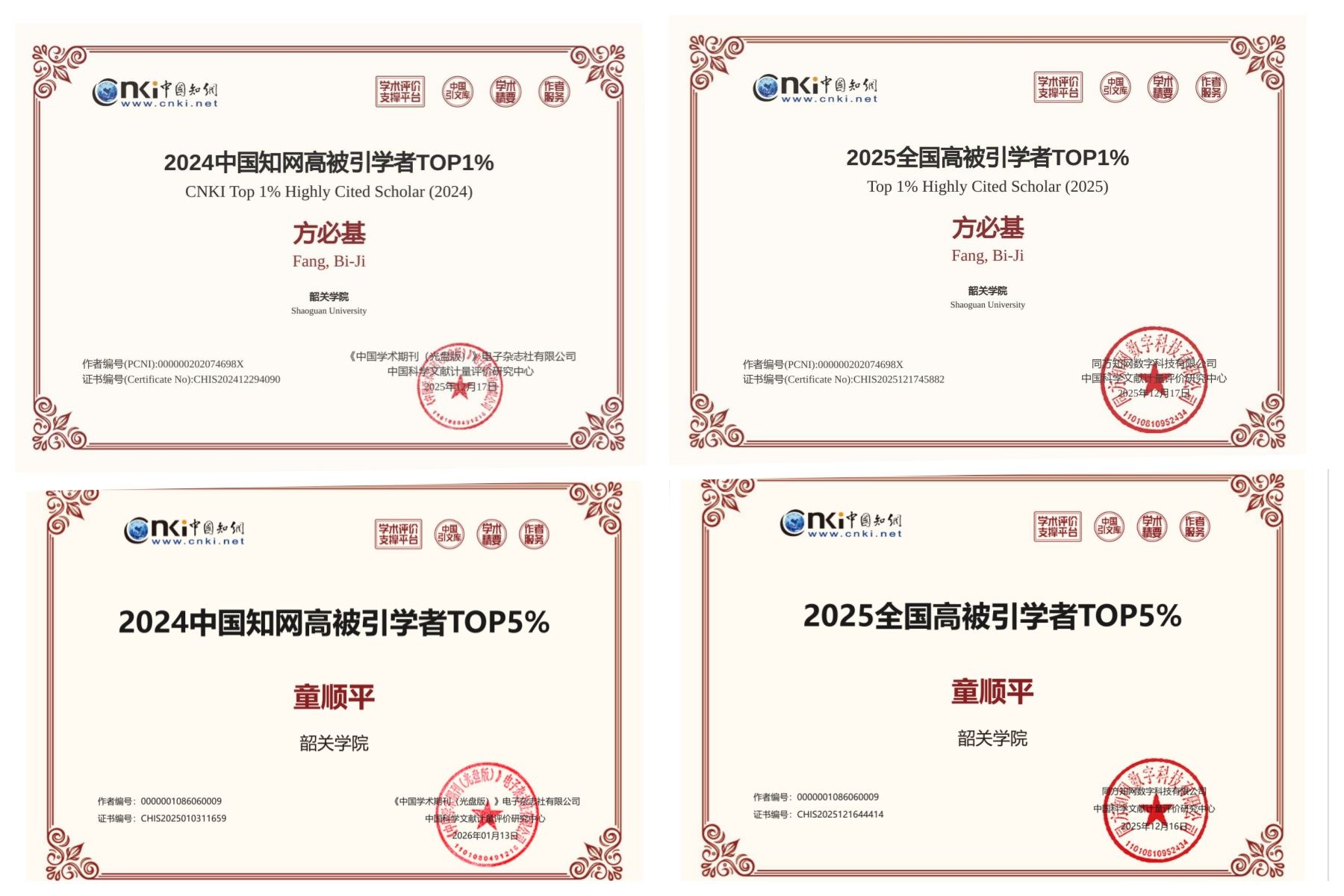 近日,中国知网·中国科学文献计量评价研究中心公布《2025全国高被引学者》遴选结果,我校教育科学学院副教授方必基博士再次入选“全国高被引学者TOP1%”行列,副教授童顺平博士再次入选“全国高被引学者Top5%”。彰显了我校重点学科教育学的学科建设成效,也凸显了学术影响力。