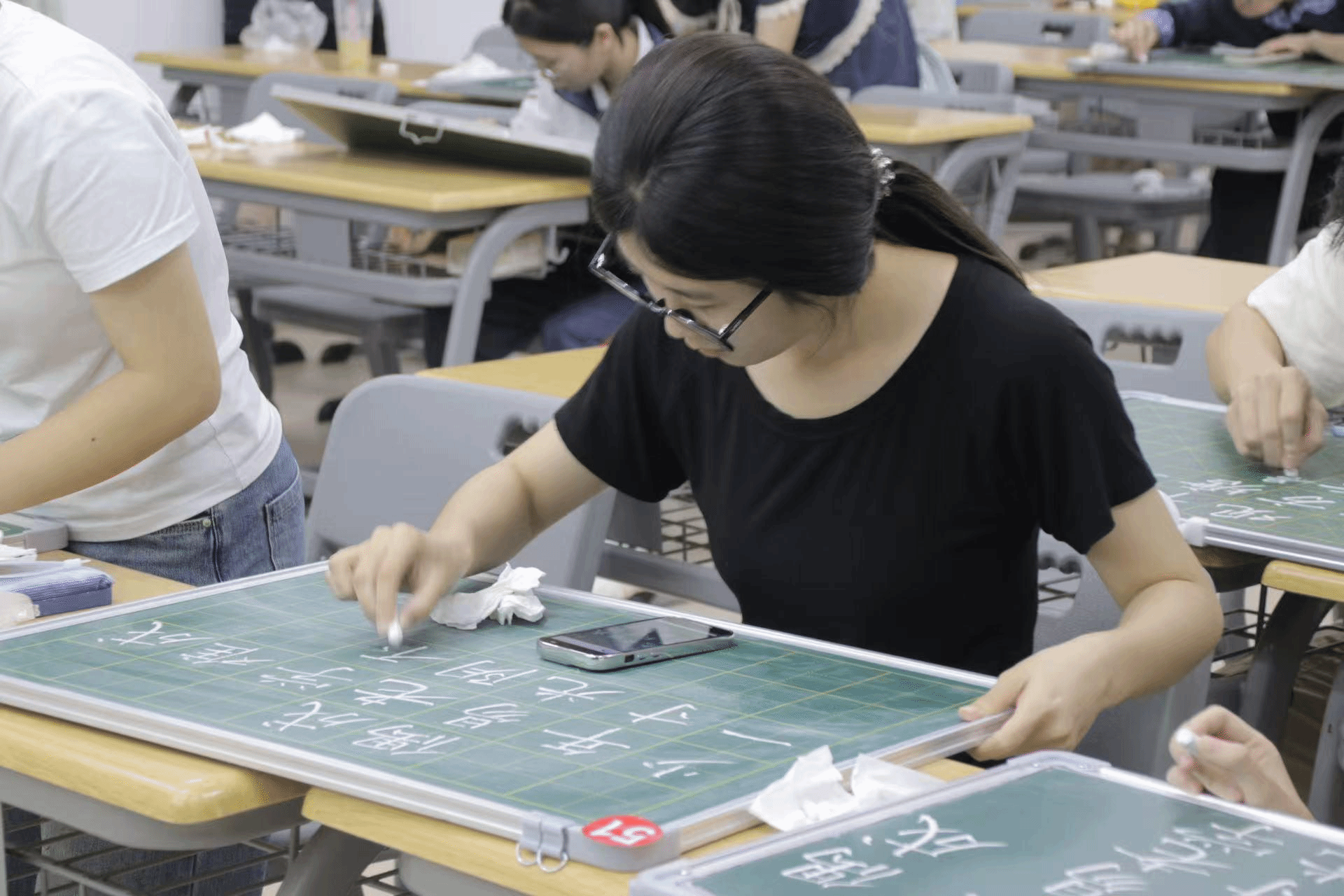 比赛内容包括毛笔与粉笔两项,采取现场书写的形式,共有九十多名选手参赛。杨建新书记强调中国汉字书写是我们师范生的基本技能,也是我们中国几千年的文化传统,练字不仅对职业生涯发展有益,还能营造浓厚的书法文化氛围,希望师生共同努力,传承中华优秀文化。评委老师陈伟坚鼓励我们在写字的基础上爱上书法,他呼吁大家在书法练习中坚持不懈。朱建高老师表示,每位同学都有使命去发扬汉字文化,这是我们作为一个中国人基本的文化素养,我们应该讲好中国话,写好中国字,做好中国人,书法不仅是文化的需要,还是我们灵魂和精神上的需要,我们要为传播中华文化贡献自己的力量。