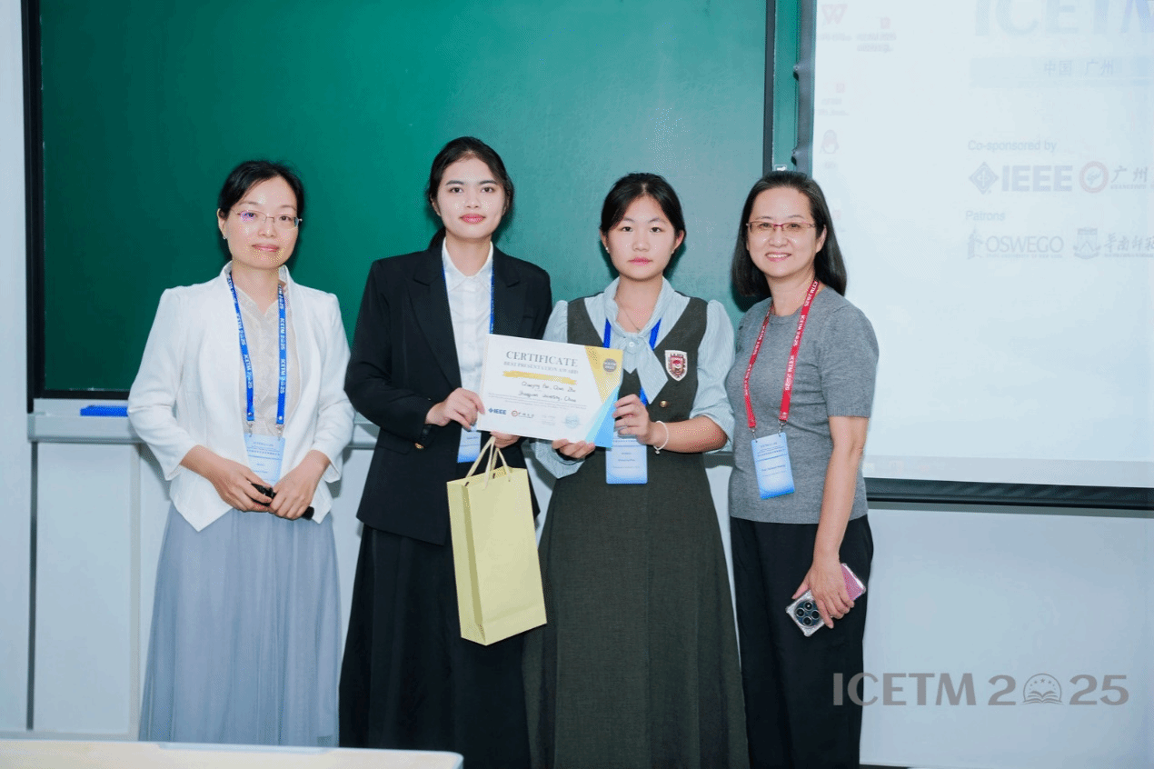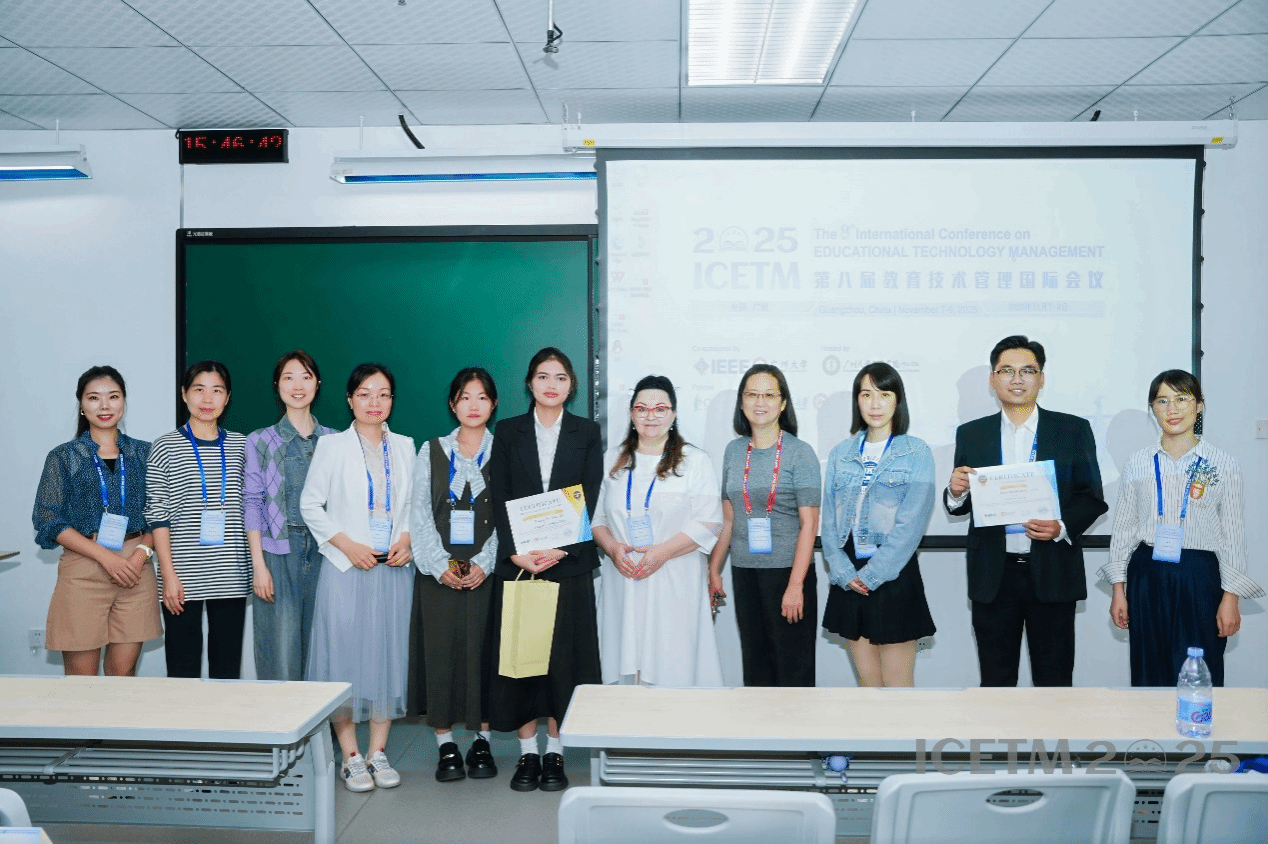 2025年11月8日至9日,教育科学学院台籍博士黄惠雯教授带领我院学生潘俏颖、朱倩到广州大学参加第八届教育技术管理国际会议(ICETM 2025,https://icetm.org)。本次会议汇聚了全球五大洲将近180位的教育技术领域的专家学者,围绕人工智能、大数据等前沿技术在教育与管理中的应用创新展开了线上/线下的深入探讨与交流。