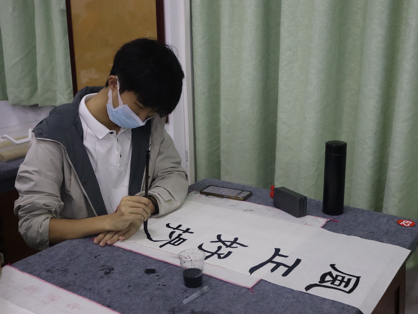 本次比赛分为毛笔字、硬笔字和粉笔字三部分,结合党的二十大精神和新时代青年的寄语设定书写内容,共有108名选手参加比赛,设置一等奖7名,二等奖11名,三等奖15名。
