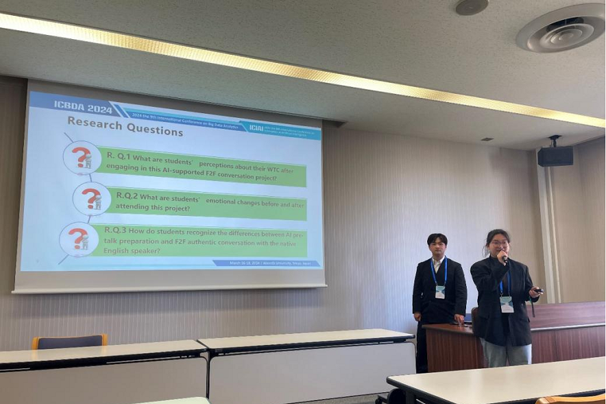 邓苑琳、温开与在研讨会上发表了题为《AI-supported Authentic Communication with Native Speakers:Exploring EFL Learners' Willingness to Communicate and Emotional Changes》的主题报告,内容涵盖了对人工智能领域的剖析和理解,表达了对人工智能领域未来发展方向的思考。