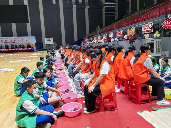 学生通过现场跟父母一起玩游戏、喂父母吃饭、给父母洗脚增进与父母之间的感情了解父母的不易与艰辛,最后杨校长寄予同学们要立志成才的同时要懂得感恩父母。