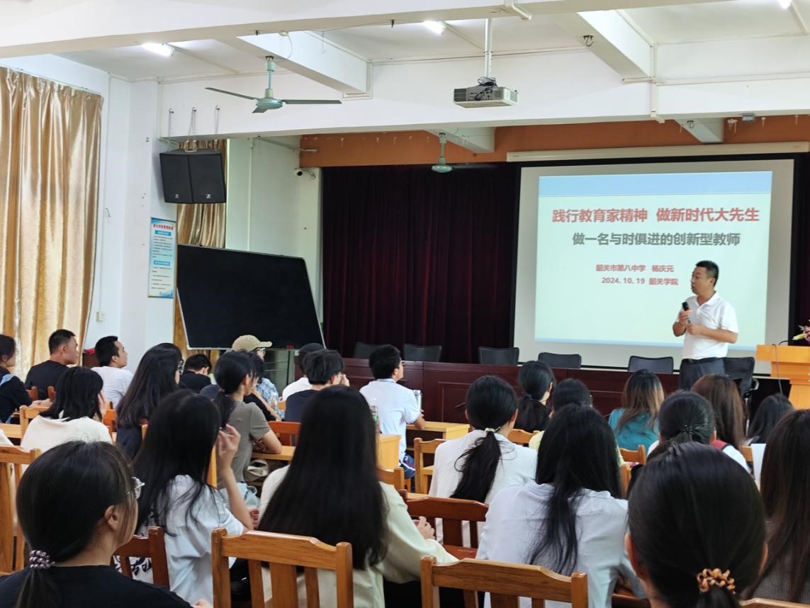 当天,学生们于上午9点准时到达韶关市第八中学。韶关市第八中学对学生一行的到来表示热烈欢迎,在学校的精心安排下,学生们首先前往会议室,聆听了一场由该校校长杨庆元带来的主题为“进行教育家精神,做时代大先生–做一名与时俱进的创新型教师”精彩讲座。