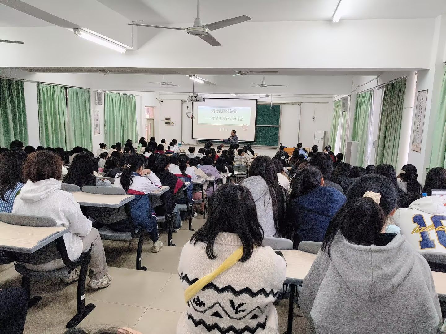 刘老师以其深厚的文学底蕴和丰富的教学经验,通过生动的讲解和互动,向师范生们传授了古典诗词的鉴赏与吟诵技巧,并强调了诗词教育在提升学生人文素养方面的重要作用。