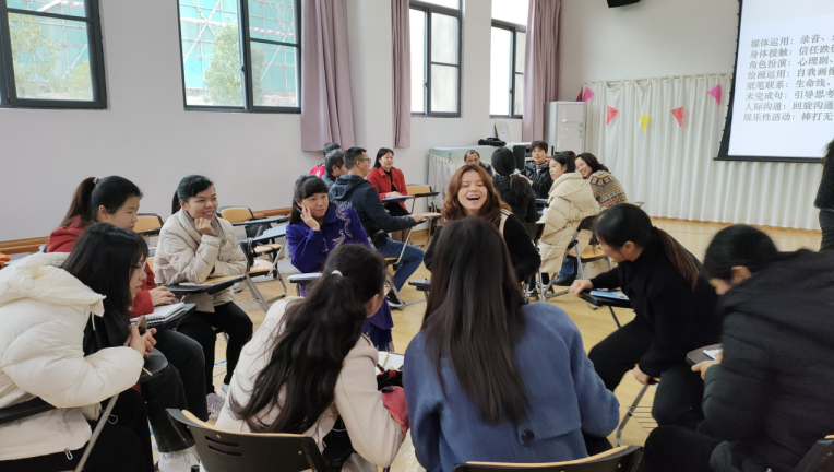 武楠楠围绕“团体心理辅导方案设计”主题,以生动的语言向与会人员介绍团辅活动的操作与应用,重点阐述了团体心理辅导的功能、设计团辅方案应考虑的问题、团体辅导方案设计的步骤,并带领老师们现场开展了“滚雪球”“风火轮”等团辅活动体验。在场的老师纷纷表示,武楠楠老师的讲座紧密结合中小学实际,内容丰富,具有很强的针对性和实用性,对于今后开展中小学心理健康教育工作,进一步提高学校德育工作的实效性,具有十分重要的意义。