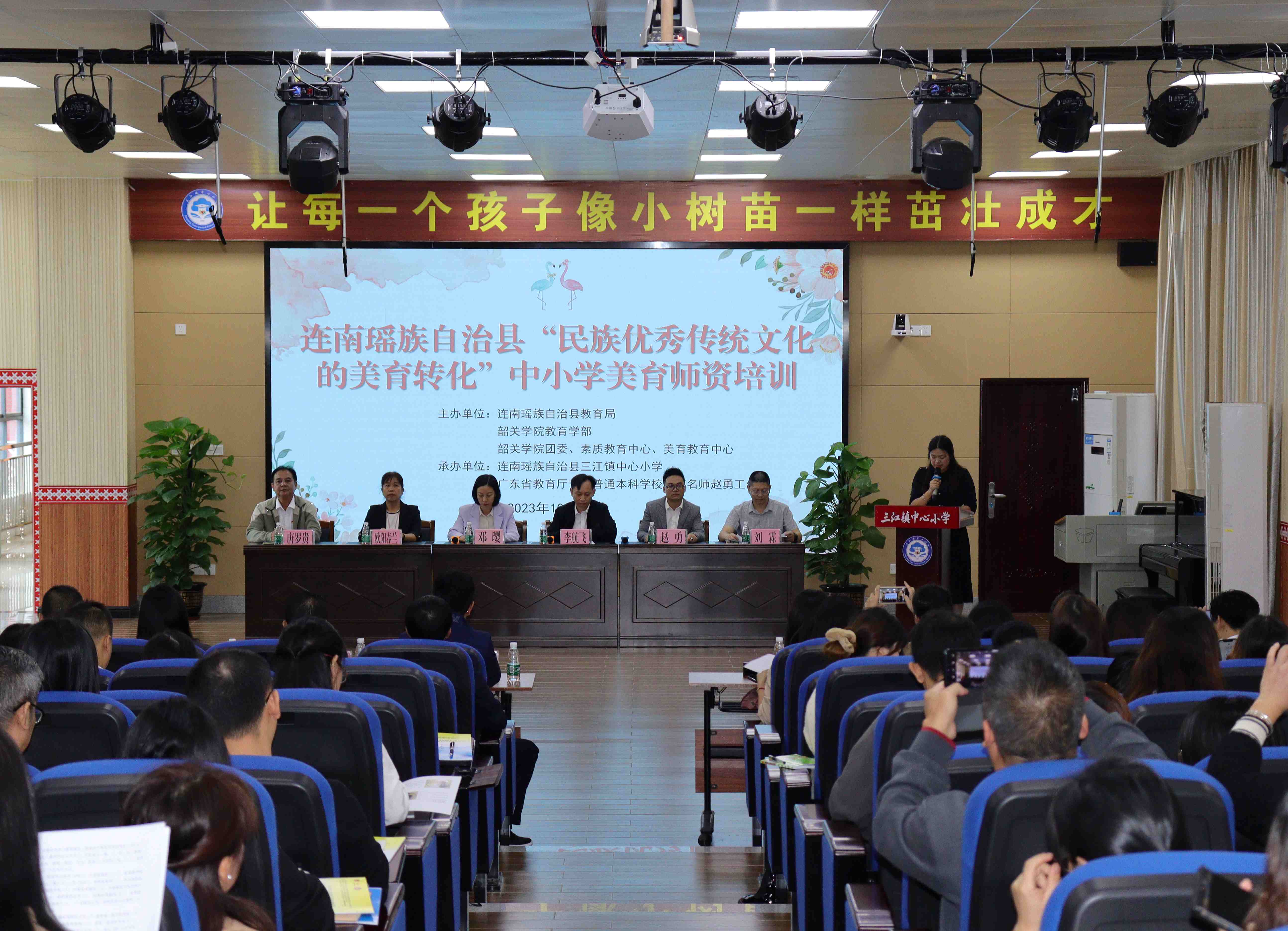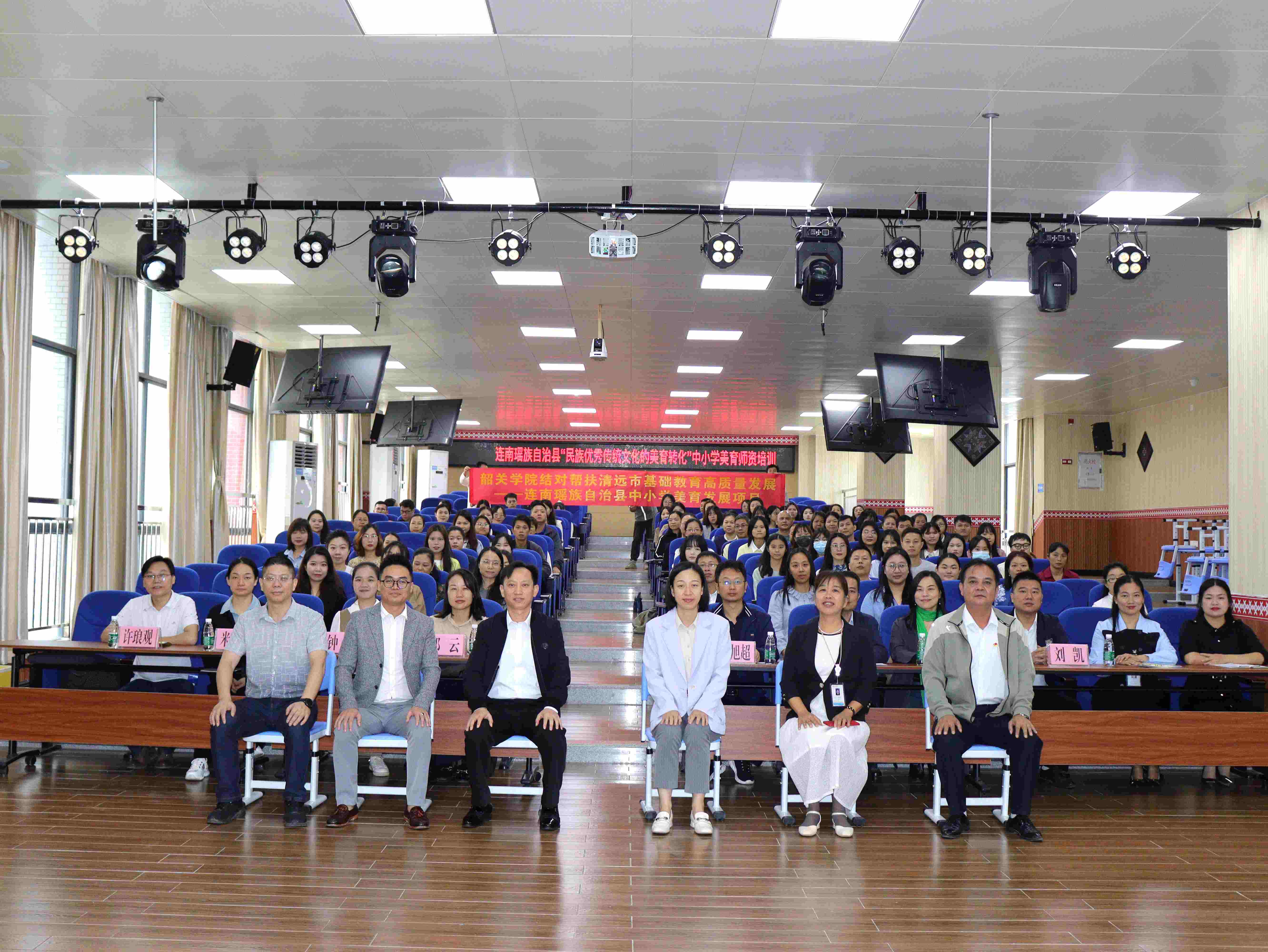 为打造“一县一校”帮扶品牌,助力清远市基础教育高质量发展,10月13日,我校与清远市连南瑶族自治县教育局在该县三江镇中心小学联合主办了连南瑶族自治县中小学美育师资培训,全县中小学一线美育教师103人参加本次培训。我校教育学部、团委及清远市教师发展中心、连南瑶族自治县教育局有关领导干部一同参加了开班仪式。本次培训活动得到了韶关学院广东省教育厅首批普通本科学校美育名师工作室(舞蹈)的大力支持。