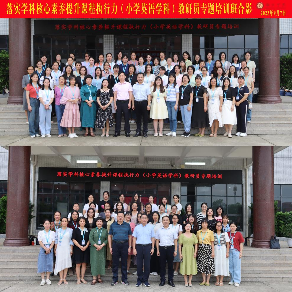 为进一步提升广东省粤东西北地区教师队伍整体素质和教育教学水平,2023年9月7日至13日,来自韶关各县区的59名小学英语骨干教师齐聚韶关学院,参加2023年广东省粤东西北教师全员轮训——2023年广东省新强师工程落实学科核心素养提升课程执行力(小学英语学科)教研员专题培训班学习。本次培训活动由韶关学院省级中小学教师发展中心(以下简称“发展中心”)承办,为期7天。