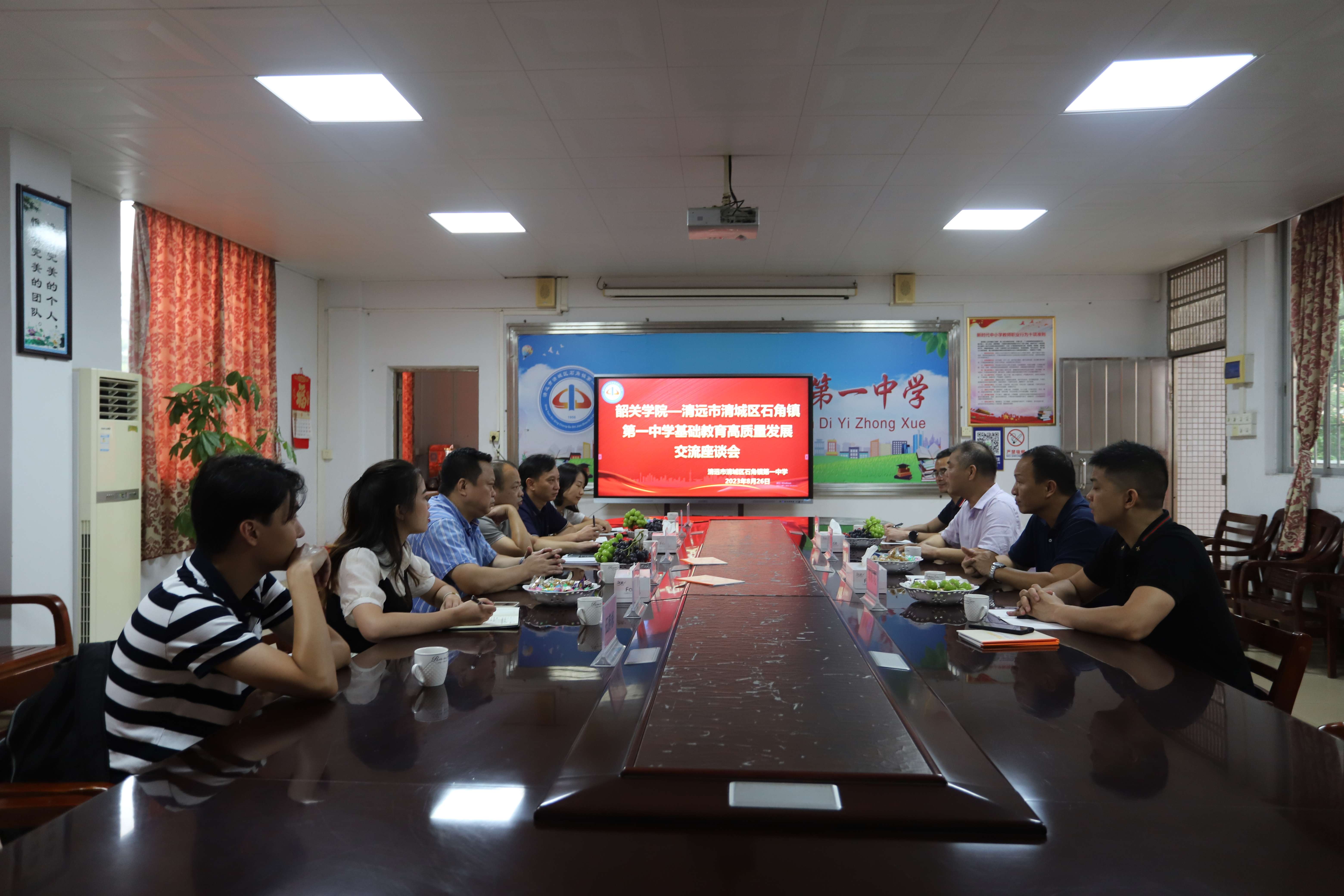 8月26日,韶关学院教育学部主任兼省级中小学教师发展中心常务副主任钟良才带队赴清远市清城区石角镇第一中学调研学习,受到该校校长潘润荣等领导的热烈欢迎和热情接待。