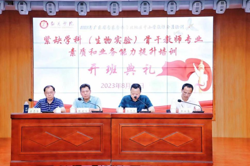 烈日当空,学履不停。为切实提高生物教师的教学能力和水平,把握新课标下的课堂教学,8月14日下午,2023年广东省粤东粤西粤北地区中小学教师全员轮训—紧缺学科(生物实验)骨干教师专业素质和业务能力提升培训班开班典礼在韶关学院省级中小学教师发展中心(一下简称“发展中心”)智慧二室举行。