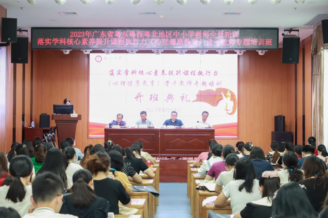 为贯彻落实《中共广东省委广东省人民政府关于推动基础教育深化改革高质量发展的意见》《广东省人民政府关于印发广东省推动基础教育高质量发展行动方案的通知》《广东省教育厅关于印发广东省粤东粤西粤北地区中小学教师全员轮训实施方案的通知》《广东省教育厅关于做好2022年新强师工程中小学幼儿园(含特殊教育)教师、校(园)长省级培训工作的通知》等文件精神,2023年广东省粤东粤西粤北全员轮训省级培训项目——落实学科核心素养提升课程执行力(心理健康教育)骨干教师专题培训教师培训于8月14日在韶关学院省级中小学教师发展中心(以下简称“发展中心”)正式开班,来自清远市的47名心理骨干教师参加了本次培训。开班典礼由发展中心培训与管理部谢晶晶主持,发展中心副主任余志兵、清远市教师发展中心副主任(副院长)陈建峰、韶关市教育科学研究院中学生物学科教研员梁志荣以及韶关学院教育科学学院副教授方必基(心理健康教育)出席了开班典礼。