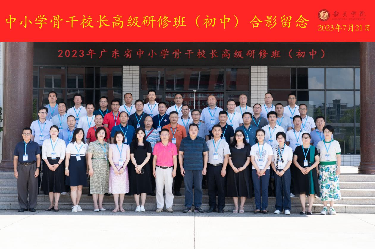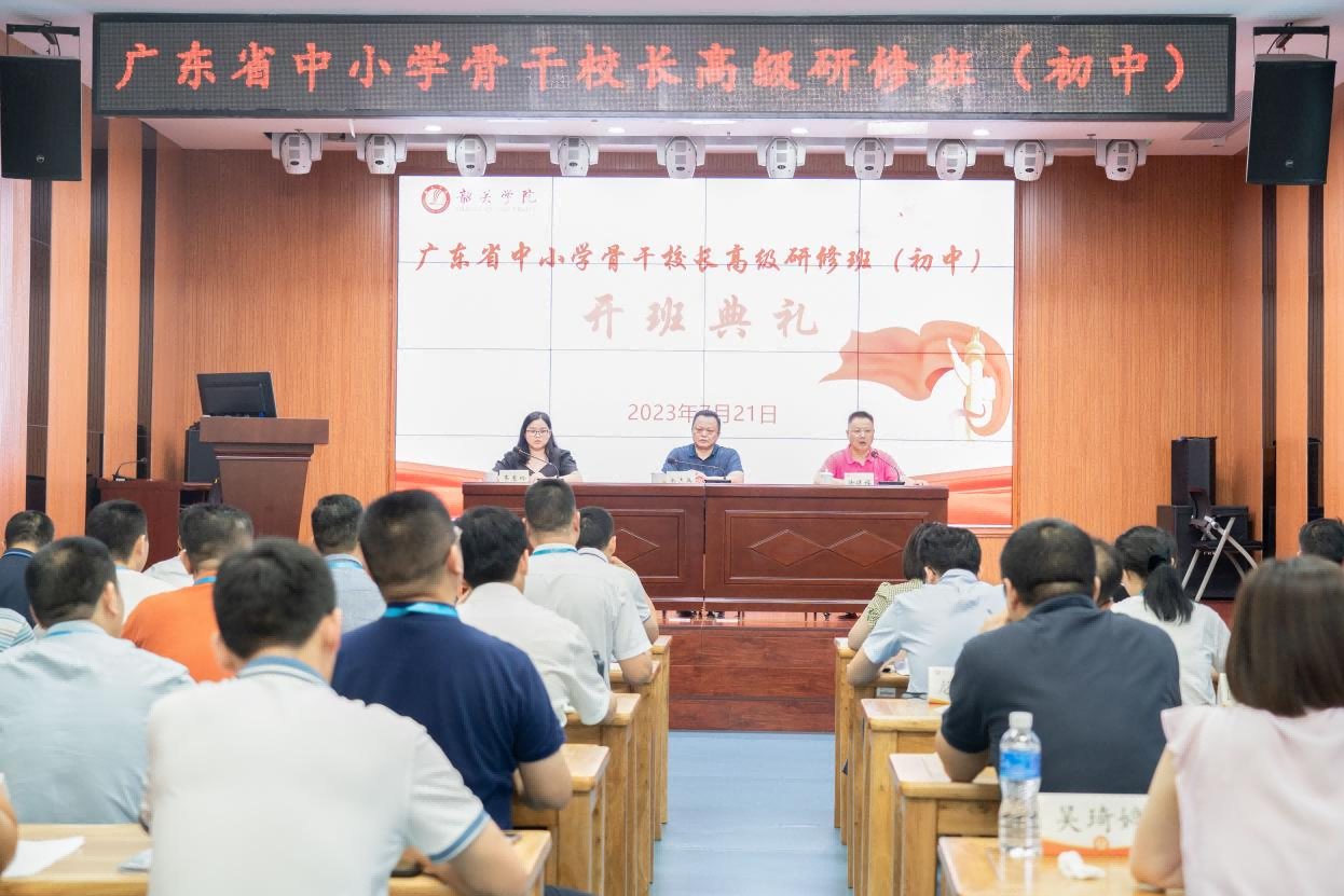 为促进中小学校长反思办学治校实践,凝练办学思想,重点提升战略思维能力、教育创新能力、引领学校可持续发展能力。由广东省教育厅主办,韶关学院省级中小学教师发展中心(以下简称“发展中心”)承办的2023年广东省中小学骨干校长高级研修班(初中)于2023年7月21日正式开班。发展中心副主任余志兵、项目首席专家徐廷福教授以及来自全省50位初中骨干校长参加了本次开班典礼。开班典礼由发展中心韦惠玲主持。
