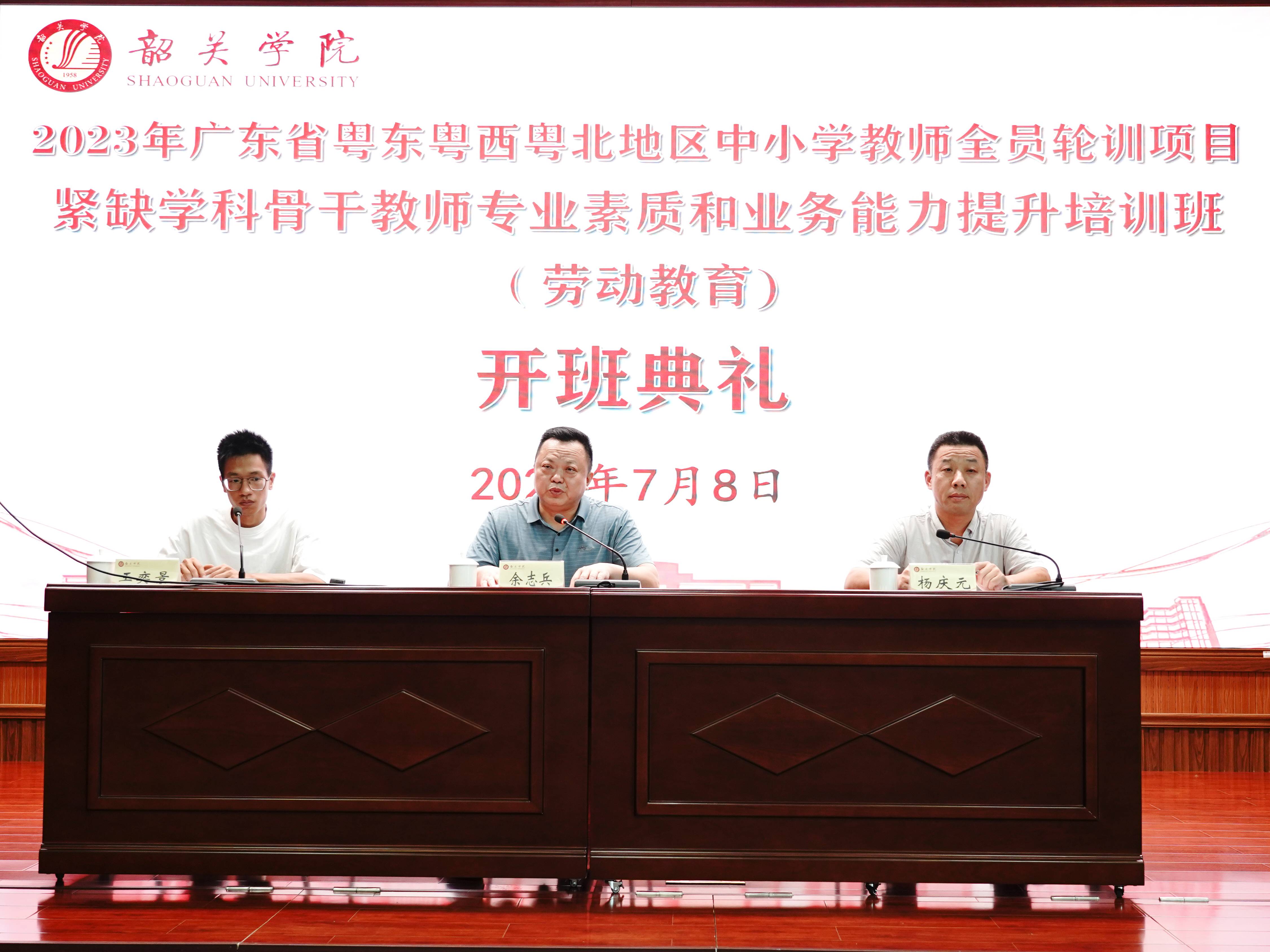 求木之长者,必固其根本,欲流之远者,必浚其泉源。为进一步提升劳动骨干教师对劳动教育课程的必要性和重要性的认识,提高劳动教育教师的专业素养和实践技能,打造一支基础扎实、业务精良的劳动教育师资队伍,7月8日下午2:30分,广东省粤东西北地区中小学教师全员轮训紧缺学科(劳动教育)骨干教师专业素质和业务能力提升培训班在韶关学院省级中小学教师发展中心(下称“发展中心”)智慧三室举行。开班仪式由韶关学院省级中小学教师发展中心王奕景主持,韶关学院省级中小学教师发展中心副主任余志兵,首席专家杨庆元出席了开班仪式。
