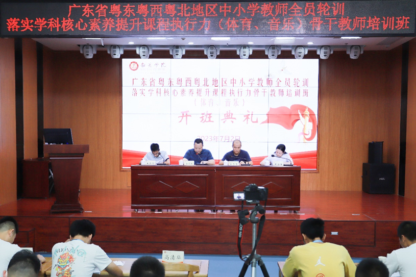 2023年7月2日下午,韶关学院省级中小学教师发展中心在蔡志明楼一楼智慧课室举行了2023年广东省粤东西北地区中小学教师——落实学科核心素养提升课程执行力骨干教师培训(体育、音乐)开班仪式。韶关学院省级中小学教师发展中心副主任余志兵等领导和来自清远地区的100名体育、音乐教师参加了开班仪式。开班仪式由韶关学院省级中小学教师发展中心王奕景主持。