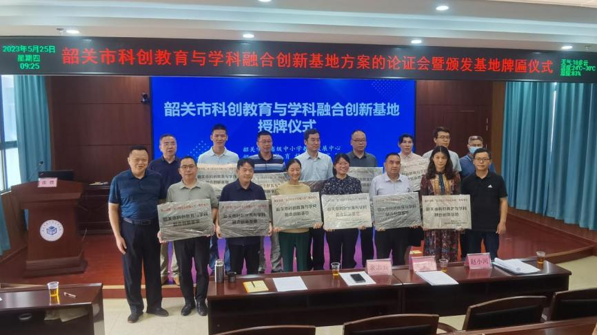 根据韶关学院与韶关市教育科学研究院全口径帮扶协议,为更好地推进基地建设,落实省、市、县级三级教师发展中心与基地校共建共享,充分发挥基地引领示范作用,我校省级中小学教师发展中心与韶关市教育科学研究院于5月25日联合开展韶关市科创教育与学科融合创新基地(以下简称:基地)的实施方案论证会和授牌仪式。论证会由韶关市教育科学研究院教育技术中心主任张弢主持。