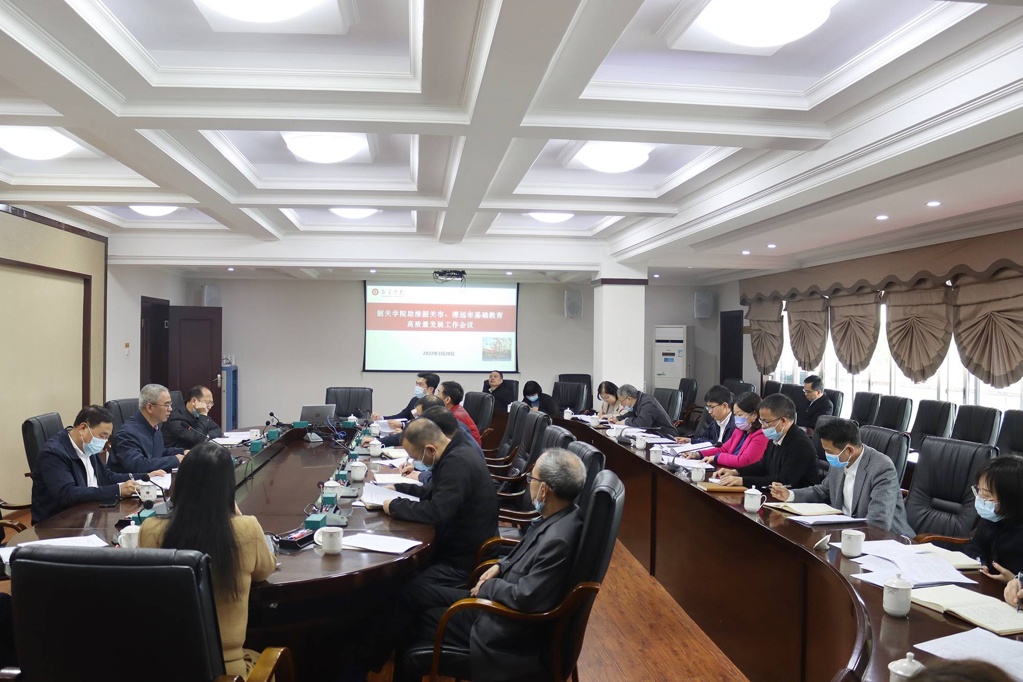 3月28日下午,学校召开推进韶关市、清远市基础教育高质量发展工作会议。会议的主要内容是深入贯彻落实《广东省人民政府关于印发广东省推动基础教育高质量发展行动方案的通知》和《广东省教育厅关于做好全口径全方位融入式帮扶粤东粤西粤北地区基础教育高质量发展工作的通知》等文件精神,研究讨论《韶关学院助推韶关市基础教育高质量发展工作方案》及工作台账,明确学校各部门推进基础教育高质量发展工作责任分工、压实各项工作任务。本次会议由副校长赵三银主持。