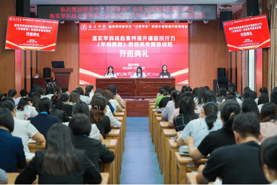 10月16日下午举行了开班典礼。我校教育学部、省级中小学教师发展中心相关负责人向学员简要介绍了学校发展历程、办学特色,强调了培训要求,希望学员们珍惜这次难得的学习机会,积极投入到培训中,努力提升自己的教学水平和专业能力,为教育事业的发展贡献自己的力量。项目首席专家、教育科学学院钟雪梅老师详细解读了本次专题培训的方案,她强调培训涉及教育科研能力提升和园本课程开发内容,由多位专家授课,旨在提升教研员课程理解和执行力,并对学员提出了殷切的希望。