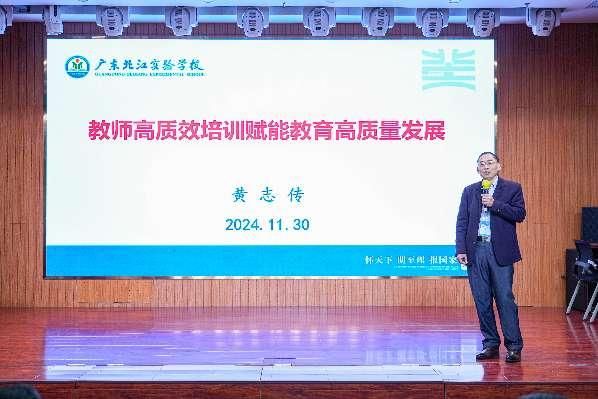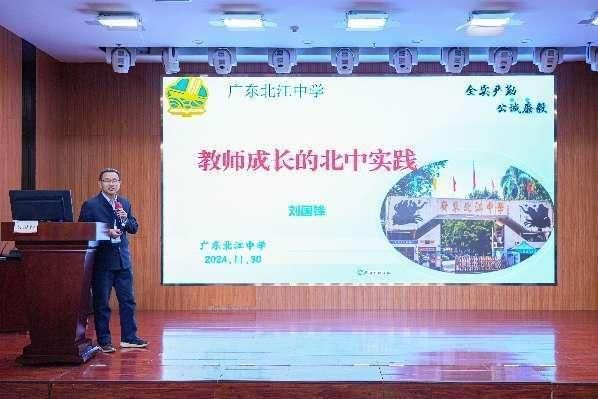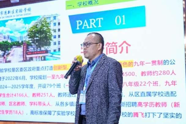 交流分享环节,广东北江中学校长刘国锋基于“教师成长的北中实践”,广东北江实验学校党总支第一书记黄志传以“教师高质效培训赋能教育高质量发展”为题,清远市清新区实验学校高级教师王明昌以“坚守教师初心 担当教育使命”为题分别进行了汇报分享。