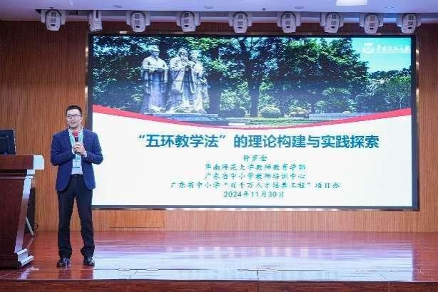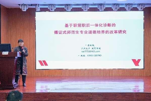 主题报告环节,四位专家进行了主题报告。华南师范大学教授李志厚以“超越优秀,追求卓越--关于为师之道与为师之术的思考”为题进行报告,广州大学教授蔡辰梅以“基于职前职后一体化诊断的循证式师范生专业道德培养改革研究”为题作报告,武汉市新洲区教师培训中心正高级教师杜新红作了“建构新时代高质量校本教师发展新模式”的报告,华南师范大学钟罗金研究员带来了“‘五环教学法’的理论构建与实践探索”的报告,提出了中小学教师专业发展的核心命题和中小学教师教育改革的主要工作。