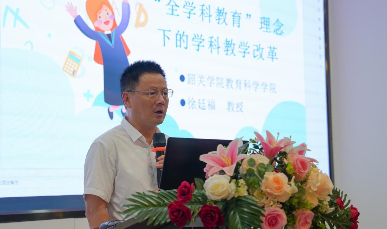 活动最后, 韶关学院教育科学学院教授、广东省“百千万人才培养工程”小学全科项目首席专家徐廷福教授做了题为《全学科教育理念下的学科教学改革》的专题讲座。徐教授以深厚的理论积淀和丰富的实践案例,深入剖析当前小学学科教学中的整合趋势,提出全科教育是基于“儿童本位”的现代教育思想,“生命教育”可以成为多学科之间的桥梁与纽带,促进学生核心素养的整体提升,本次活动的举办标志着各学校在跨学科“生命教育”课程建设上迈出的重要一步。