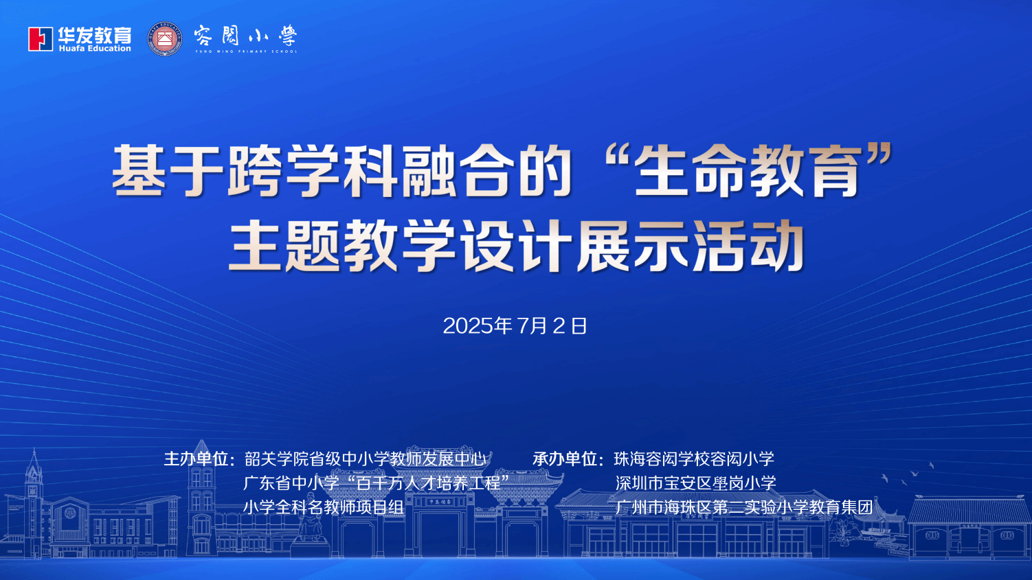 7月2日,基于跨学科融合的“生命教育”主题教学设计展示活动在珠海容闳学校容闳小学圆满举行。此次活动由广东省中小学“百千万人才培养工程”小学全科名教师项目组主办,珠海华发教育发展有限公司、深圳市宝安区壆岗小学、广州海珠第二实验小学教育集团共同协办。韶关学院教育科学学院徐廷福教授,陈庆礼博士,华发教育公司副总经理黄学军博士莅临指导。本次展示活动共有校长致辞、教学展示、专家讲座三大环节,环环相扣,内容充实。