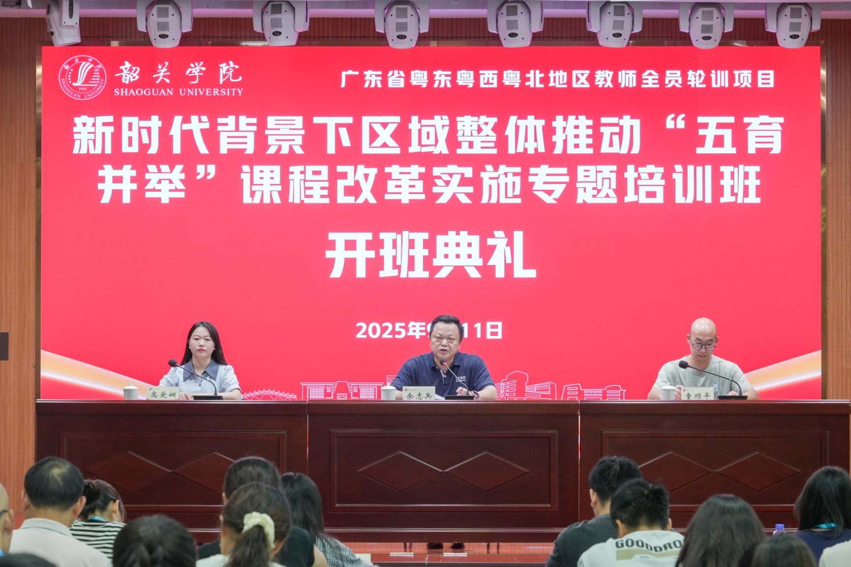 2025年9月11日-15日,由省教育厅主办、我校省级中小学教师发展中心承办的2025年粤东粤西粤北地区教师全员轮训项目——新时代背景下区域整体推动“五育并举”课程改革实施专题培训在我校顺利举办。来自韶关市的50名骨干教师参加了此次培训。