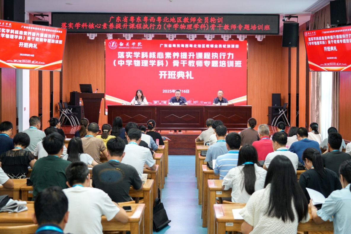 为落实物理学科核心素养提升课程的教学执行力,适应“双减”政策及新课程改革要求,9月16日至20日,由广东省教育厅主办、我校省级中小学教师发展中心承办的广东省粤东粤西粤北地区教师全员轮训项目——落实学科核心素养提升课程执行力(中学物理学科)骨干教师专题培训在我校顺利举办。来自韶关市的51名初中物理骨干教师参与本次培训。