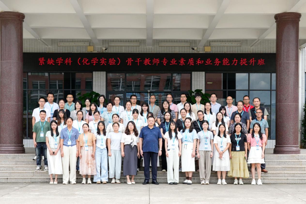 2025年9月22日至26日,由广东省教育厅主办、我校省级中小学教师发展中心承办的广东省粤东粤西粤北地区教师全员轮训项目——紧缺学科(化学实验)骨干教师专业素质和业务能力提升培训在我校顺利举办。来自韶关市各县区的50名初中化学骨干教师参加了此次培训。