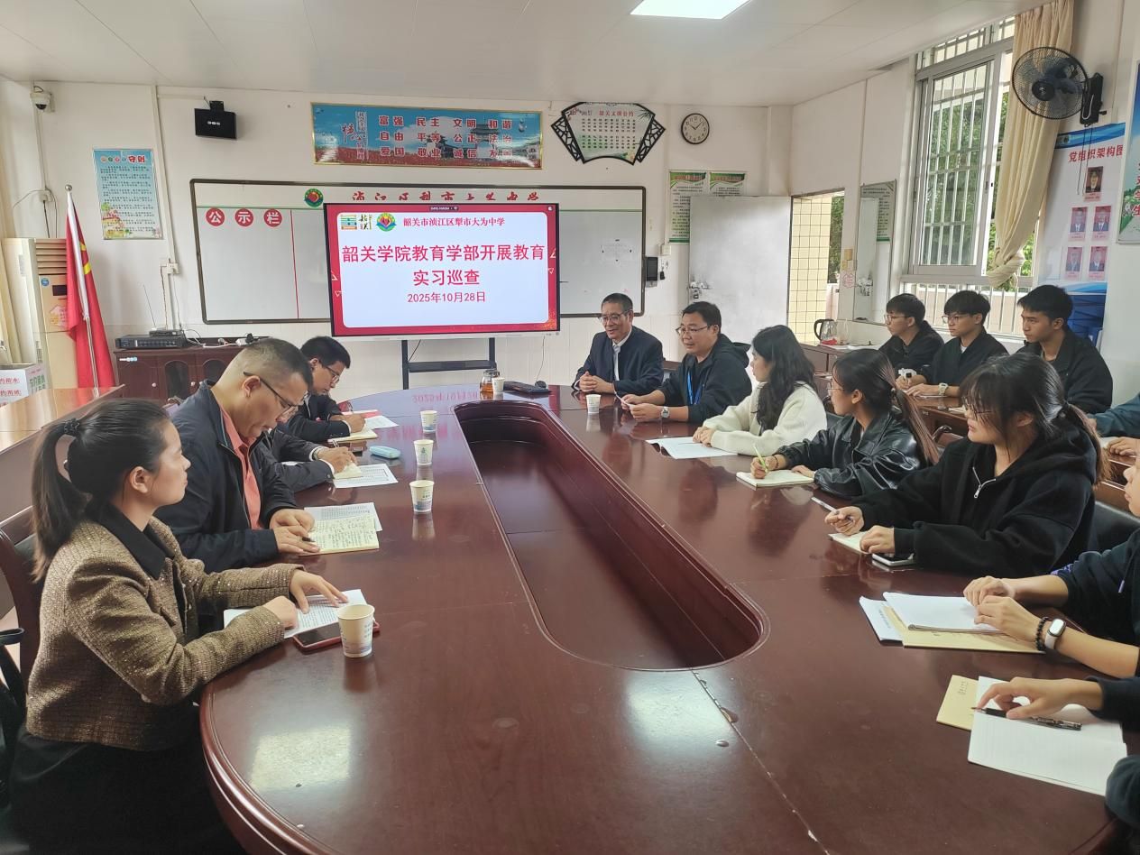 为加强师范生实践能力培养,推动高校与基础教育学校协同育人走深走实,2025年10月28日,教育学部主任周思海、教师教育实践教学管理中心主任李银一行四人,前往韶关市浈江区犁市大为中学及乐昌市城关中学,开展混合编队教育实习中期专项检查工作。