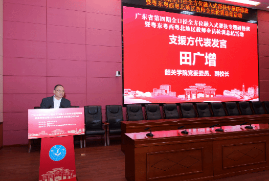 为系统总结全口径全方位融入式帮扶工作和粤东粤西粤北地区教师全员轮训成效,12月8日至9日,广东省教育厅在嘉应学院举办第四期全口径全方位融入式帮扶专题研修班暨粤东粤西粤北地区教师全员轮训总结活动。省委教育工委委员、省教育厅党组成员、副厅长李璧亮出席开班并讲话,我校副校长田广增参会并作经验分享发言。