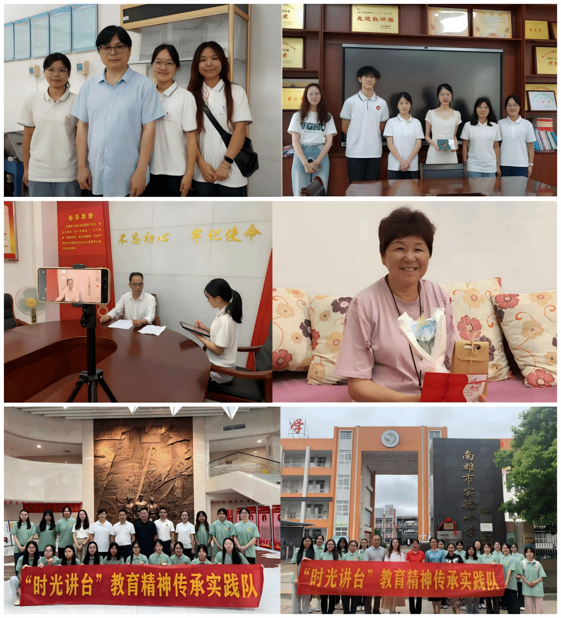 6月18日至7月10日期间,实践队采访全国模范教师徐永刚、吕芳雅、全国优秀教师吴伟辉教授和沈穗副校长。徐永刚以“共情教育”引导学生,深耕思政教育,实现知识传授与价值引领融合;95后吕芳雅扎根乡镇,针对留守儿童构建“识材-施教-动态调整”体系,助乡村孩子找到自信;吴伟辉扎根粤北14年,填补国内多材料3D打印技术空白,将科研与教学融合,培养“智造人才”;沈穗扎根山区30余年,推行“学生自主管理”,用爱与责任守护留守儿童。7月10日,实践队走进南雄市实验小学,对话龚倩红校长、雷明秀副校长与熊冬琴老师。龚倩红构建美术特色课程,以“一课三磨”模式解决农村学校技术应用碎片化问题;雷明秀创新劳动教育,让劳动成为五育融合催化剂;熊冬琴开设家长课堂,破解亲子关系难题,培养学生凝聚力。队员深受触动,立志传承教育家精神。