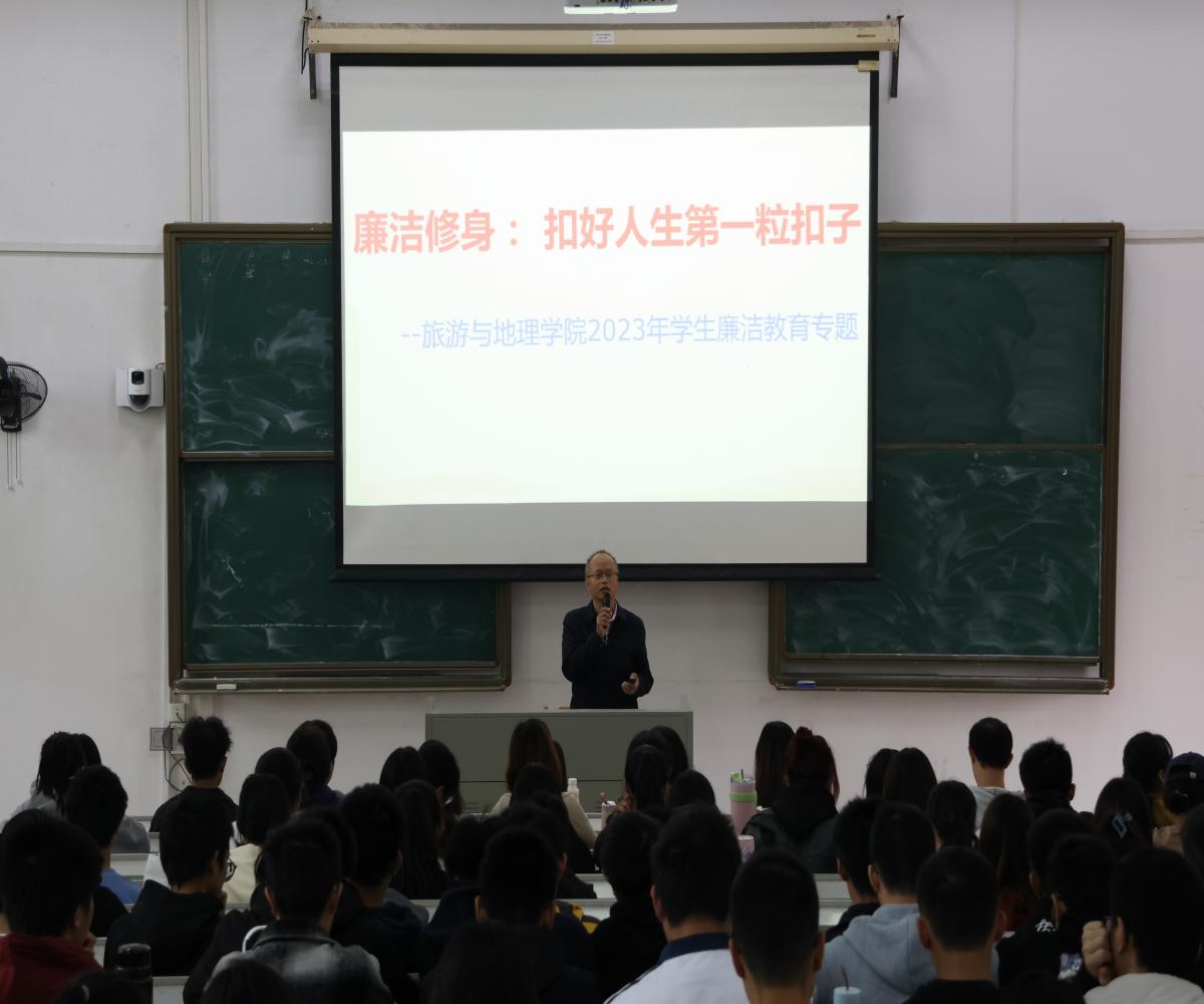 为帮助2023级新生树牢廉洁意识,扣好廉洁修身的第一粒扣子,旅游与地理学院于11月17日在善德楼B-402课室举行题为《廉洁修身:扣好人生第一粒扣子》专题讲座。邀请学院党委副书记兼纪检委员肖著华主讲。辅导员罗艳,2023级全体学生及2021级、2022级各班团支部书记、班长参与听讲。