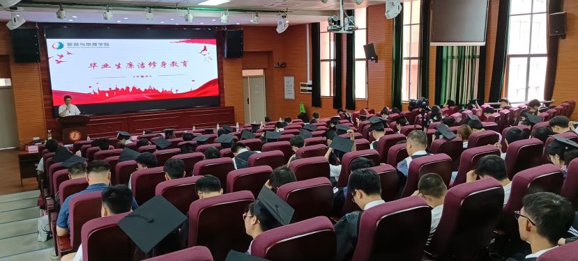 曾裕华代表学院致辞,向顺利毕业的同学们致以最热烈的祝贺;向悉心指导、关心关爱学生成长的老师们致以崇高的敬意;向密切配合学校教育教学工作,一路陪伴、助力学生们成长的家长亲友表示衷心的感谢。曾裕华希望即将离校各奔前程的毕业生们厚植爱国情怀,担当使命重任,做一个肯奋斗、担责任、怀仁爱、懂感恩的人。他还从秉持初心,担当使命,坚守清廉底线;明规守纪,立德修身,筑牢廉洁防线;心怀家国,正心明道,涵养清风正气;反躬自省,慎思笃行,磨砺清廉本色四个方面对毕业生开展廉洁修身教育,叮嘱毕业生们扣好廉洁从业的“第一粒扣子”,廉以修身,洁以养德,清风同行,行稳致远。