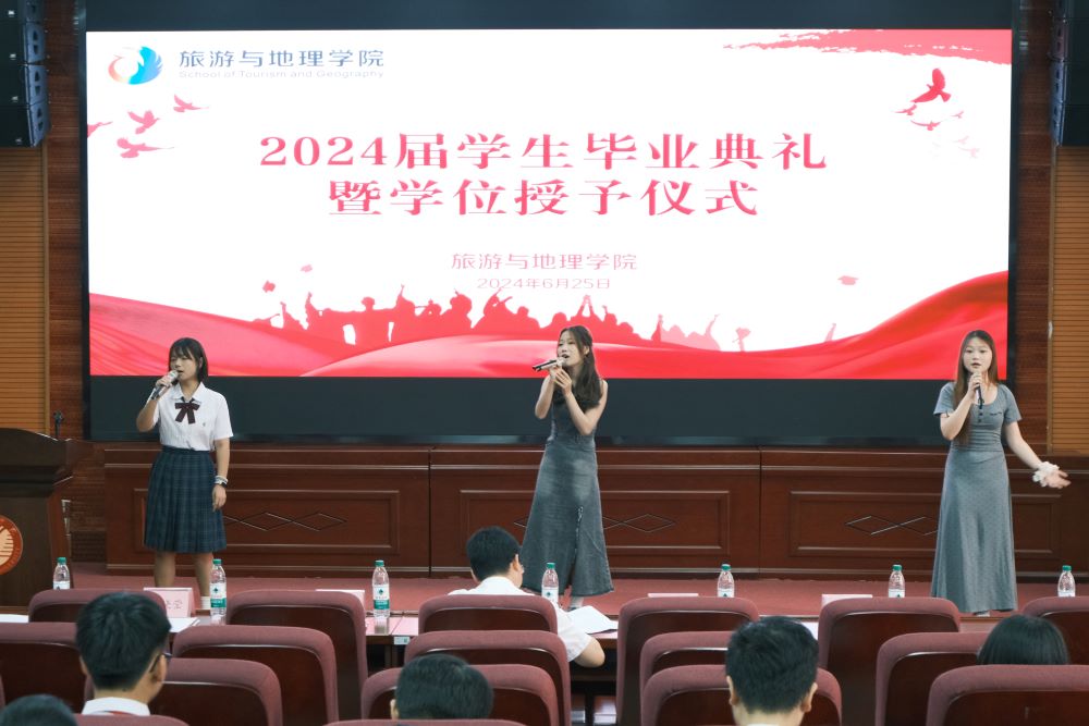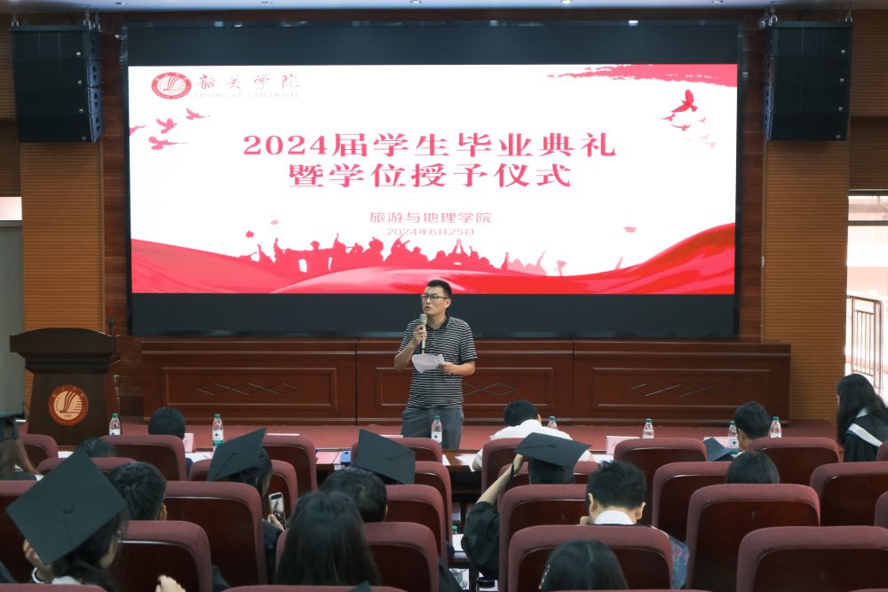 6月25日上午,旅游与地理学院在才德楼C200举行2024届毕业生毕业典礼暨学位授予仪式,共同见证毕业生们顺利完成学业、开启人生新篇章的重要时刻。旅游与地理学院党委书记曾裕华、副院长(主持行政工作)李航飞、五级专职组织员邱祖发、副书记肖著华,副院长许树辉、罗晓莹,教授张清军及系主任、教研室主任、毕业班班主任、辅导员以及全体2024届毕业生和师弟师妹代表参加了典礼。典礼由肖著华主持。