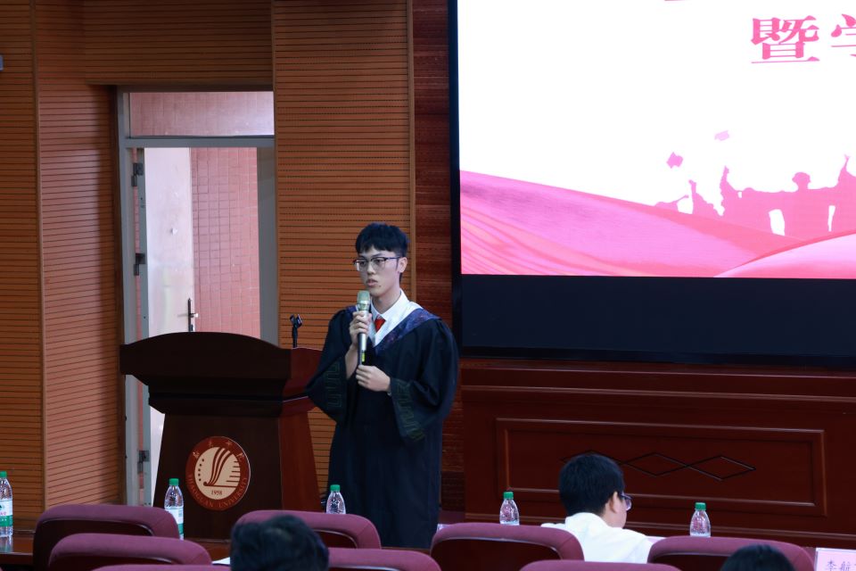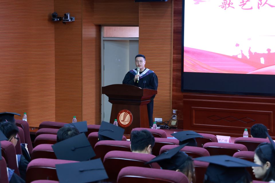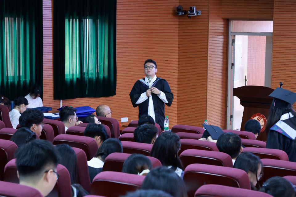 在典礼活动开始前,学院导师、班主任殷切寄语毕业生,师弟师妹献唱、发言给师兄师姐送上美好祝福,毕业生代表分享了毕业感想和求学就业经验。