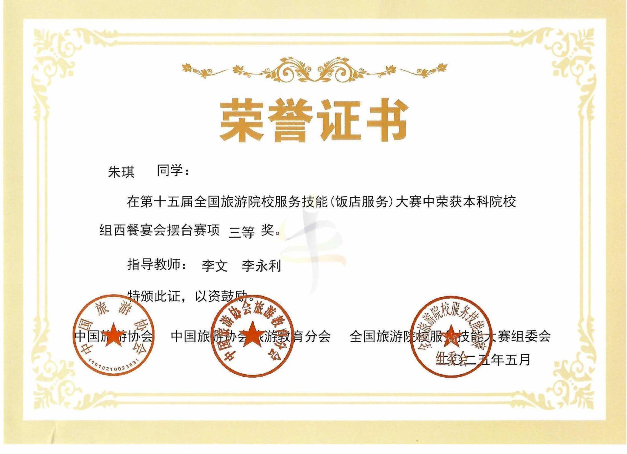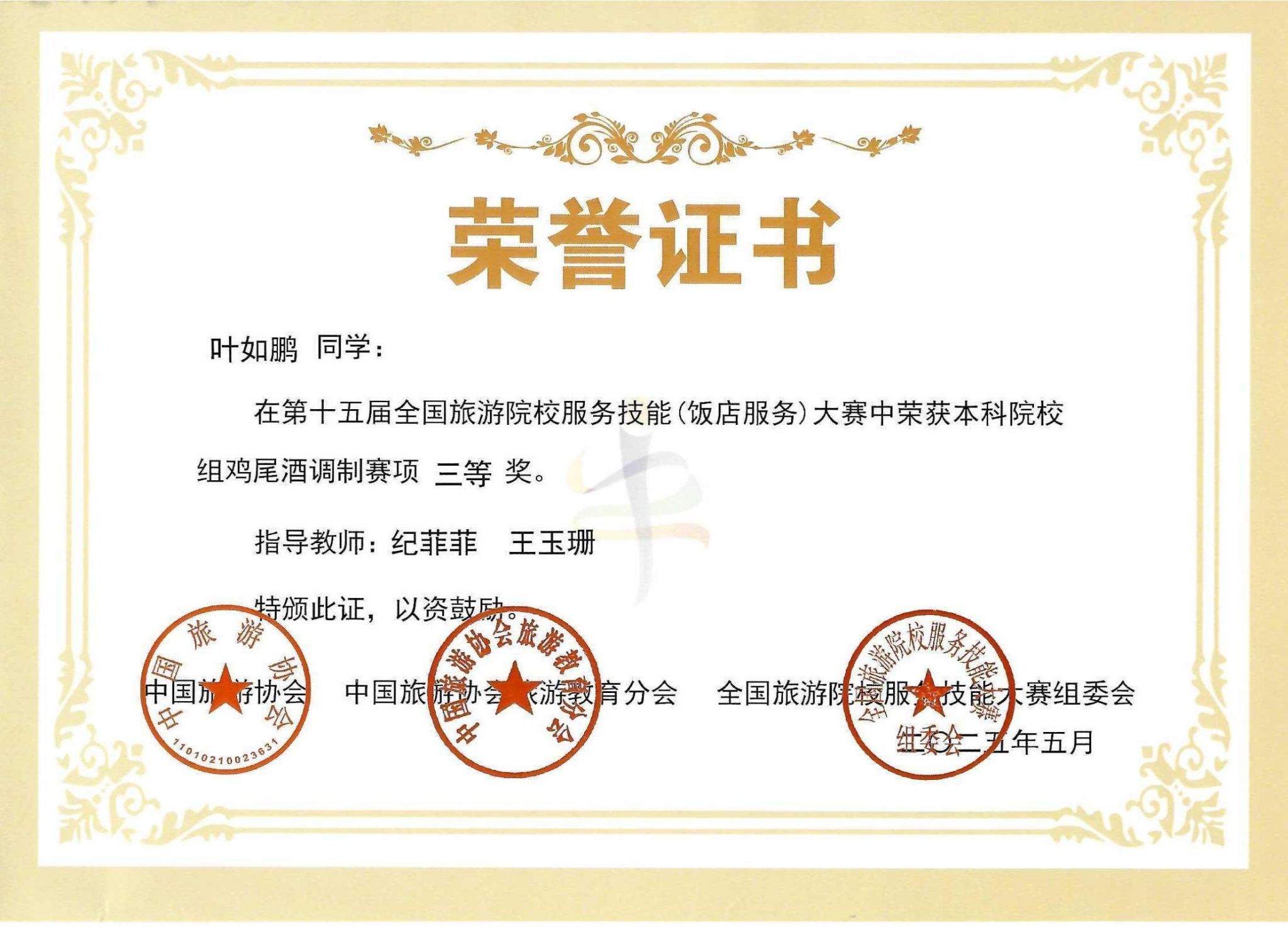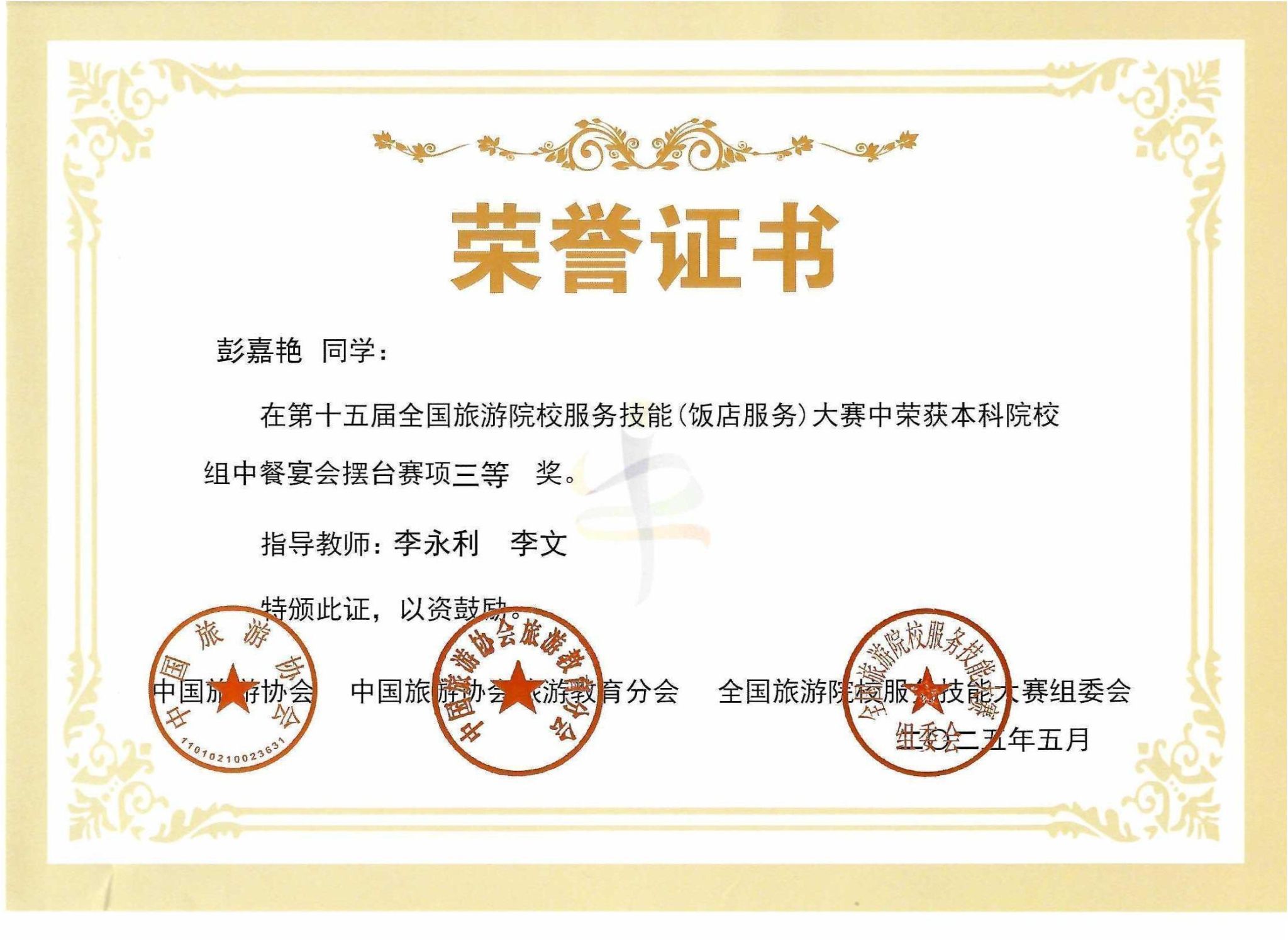 我校学生在第十五届全国旅游院校服务技能大赛中斩获佳绩