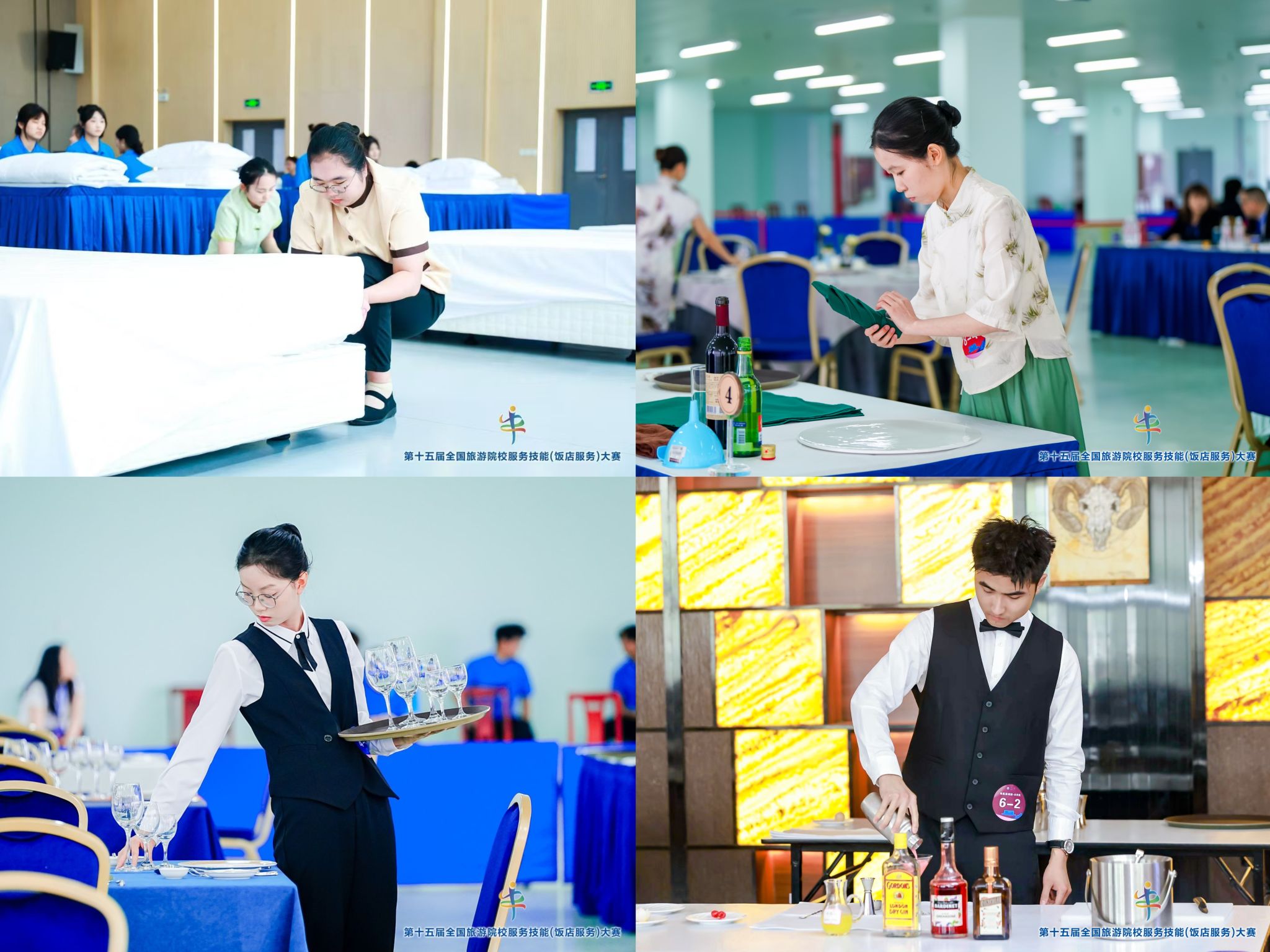 2025年5月14日至18日,我校旅游与地理学院组织学生赴河南郑州参加了第十五届全国旅游院校服务技能(饭店服务)大赛。本次大赛由中国旅游协会提供指导,由中国旅游协会旅游教育分会主办,并由郑州旅游职业学院承办,属于旅游管理专业认可度非常高的大赛之一。本项赛事每两年才举办一次,因此吸引了来自全国28个省、自治区、直辖市的185所院校、596名选手同台竞技,竞争激烈。大赛分为本科院校组、高职高专院校组和中职学校组,设有中餐宴会摆台、西餐宴会摆台、客房服务、鸡尾酒调制四个项目。每个项目由综合知识理论考核、英语水平测试、现场操作三个部分组成,旨在全面考查学生的综合能力。