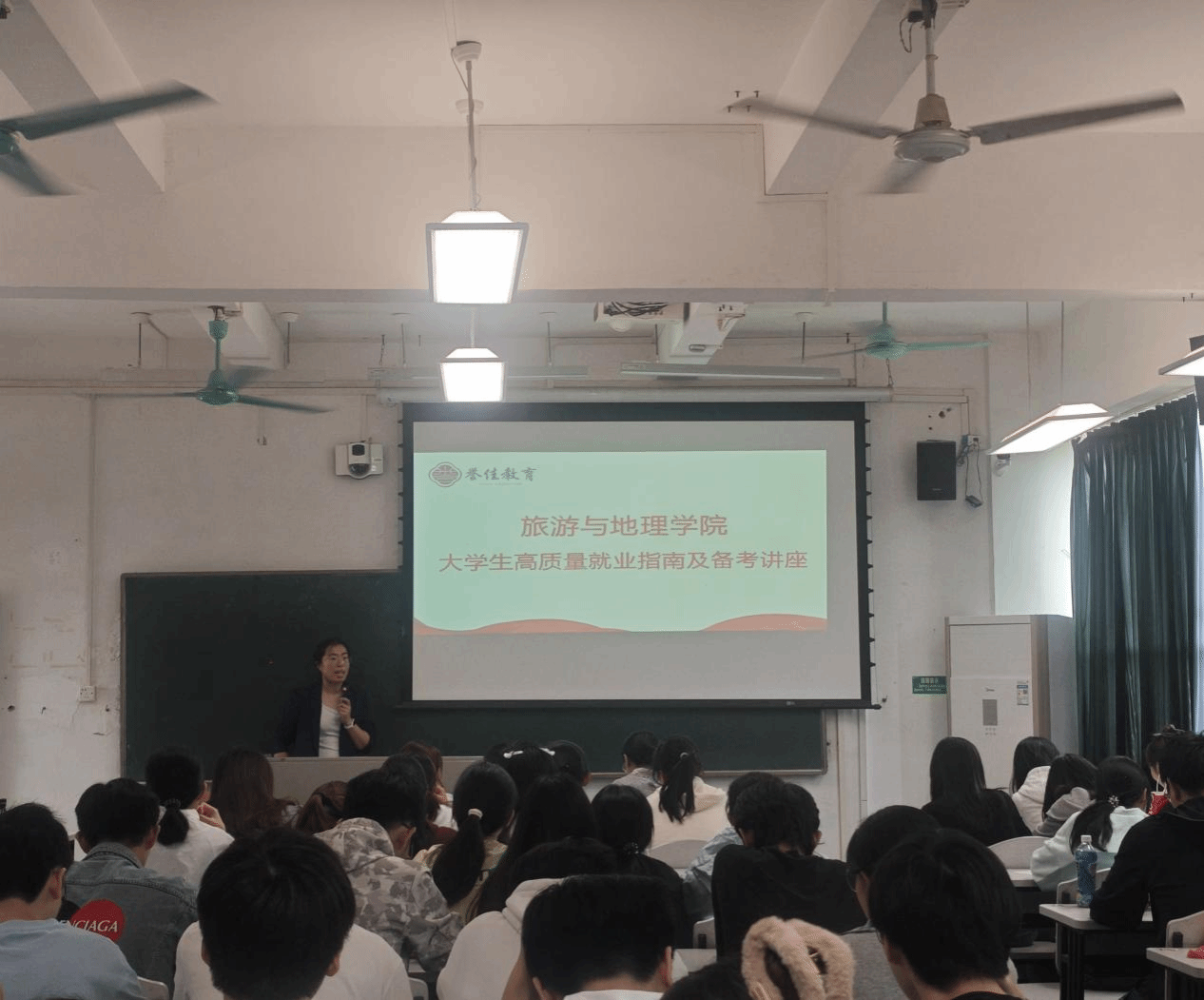 为助力我院学子明晰职业规划,提升就业竞争力,10月29日下午,学院面向2023级学生,在南一A205开展以“大学生高质量就业指南及备考方案”为主题的讲座。本次讲座活动邀请誉佳教育机构资深讲师吴婷婷主讲,她凭借丰富的行业经验和专业知识,为同学们带来了一场内容丰富、实用性强的备考指导。讲座由辅导员罗艳老师主持。