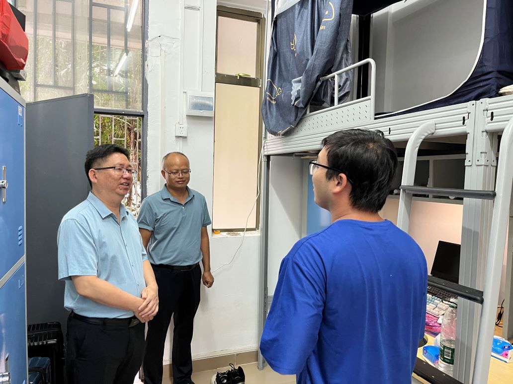 开学伊始,旅游与地理学院党委书记曾裕华、院长田广增、副书记肖著华和副院长许树辉到学院实训室、教室、学生社区进行开学检查工作。期间检查了各个实验室的设备运行情况,并了解专任教师上课和学生假期及返校情况。曾裕华、田广增强调,要高度重视安全工作,确保实验室、学生社区、课堂教学安全,确保师生生命健康安全和校园稳定,及时发现和消除各类安全隐患;杜绝消防安全事故,禁止在学生社区使用违章电器和在校园骑行摩托车、电动车;关心帮助存在困难和遭受突发事故的人员,广泛开展师生交通安全、食品安全、网络安全、政治安全和意识形态安全教育及心理健康教育,宣传疫病防治、电信诈骗防范、台风灾害预警知识。