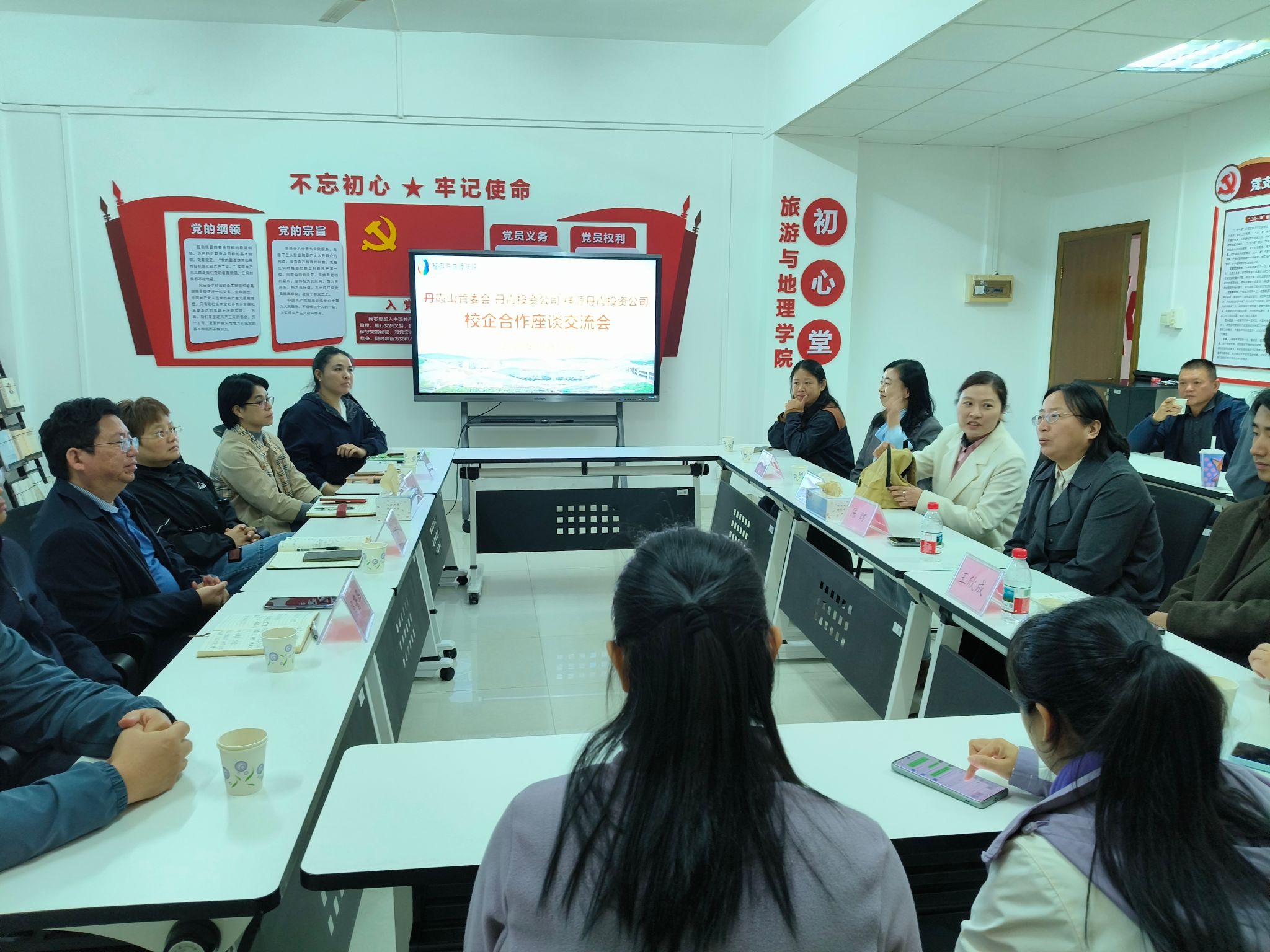 韶关学院地方合作与服务工作办公室副主任贺爱兰,旅游与地理学院党委副书记肖著华、副院长罗晓莹、旅游管理系主任李文、地理科学系主任杨林及青年博士教师,丹霞山管理委员会副主任(副局长)李俊枫、三级调研员陈昉,丹霞山旅游投资经营有限公司副总经理黎娟娟,祥源丹霞旅游投资有限公司新媒体负责人王欣成等参加了座谈交流。