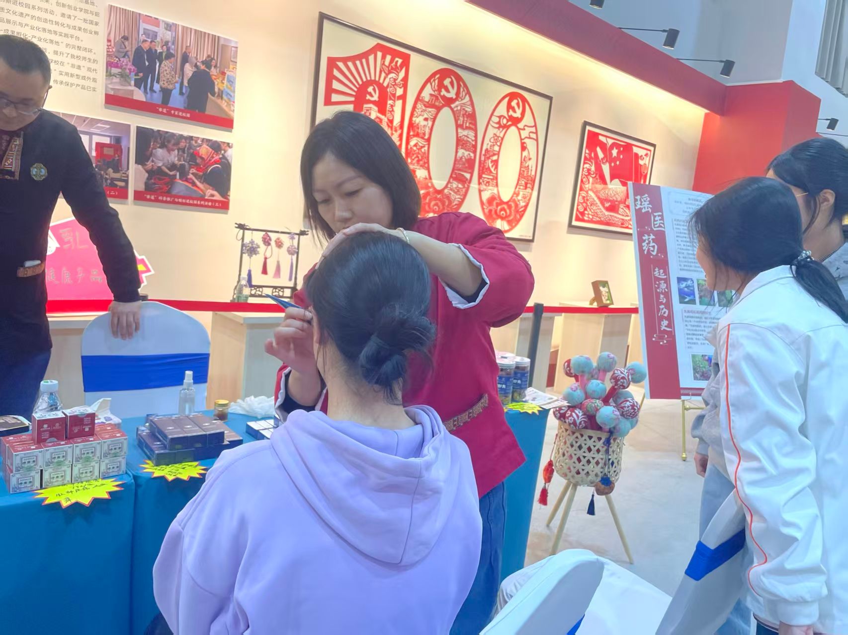 当天上午10点开始,展示中心迎来了众多师生,他们或驻足观看展览,或亲身体验瑶药制作,或与传承人深入交流,现场气氛热烈而有序。