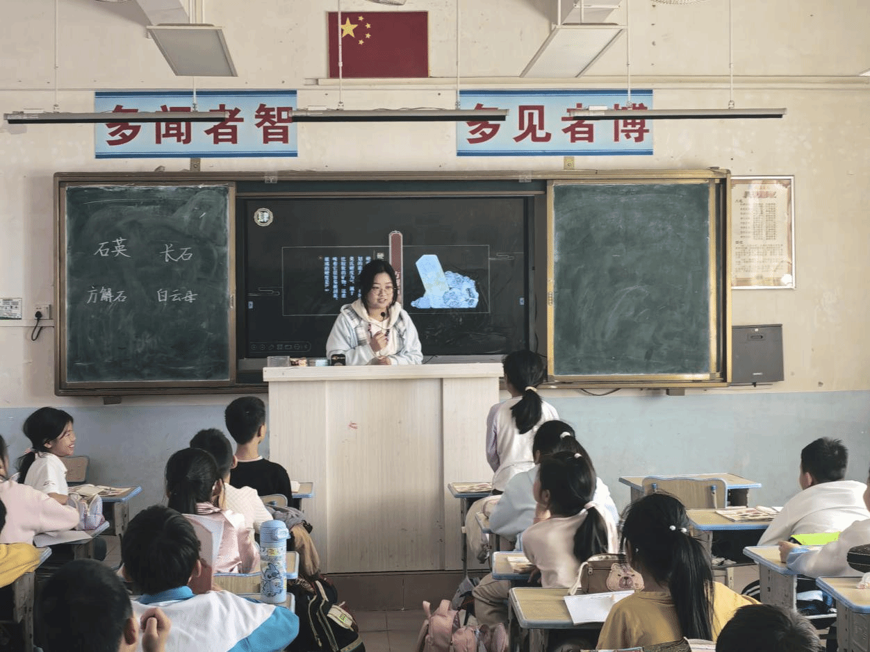 为贯彻落实纵向帮扶工作,发挥地理师范专业学科优势,培养小学生的科学兴趣和观察能力。11月28日,韶关学院旅游与地理学院义教队六名队员走进南雄市珠玑镇中心小学,为四年级学生带来两节生动的矿物科普课堂。